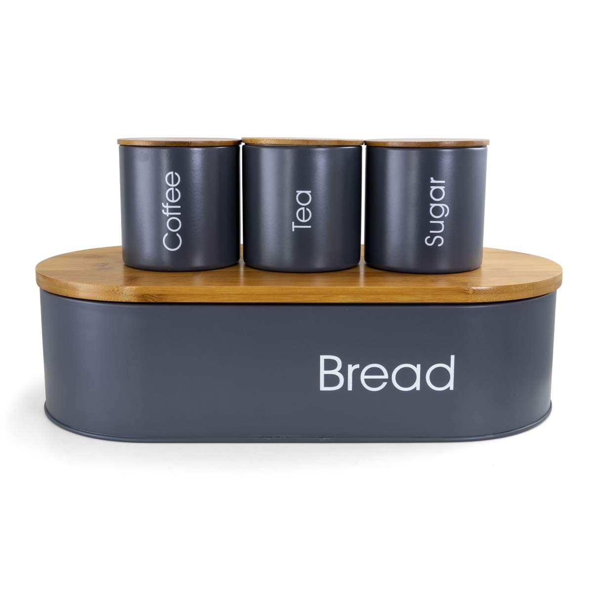 Megachef Mg-317 Bamboo Kitchen Countertop Metal Bread Basket & Canister Set In Gray With Lid - 4 Piece