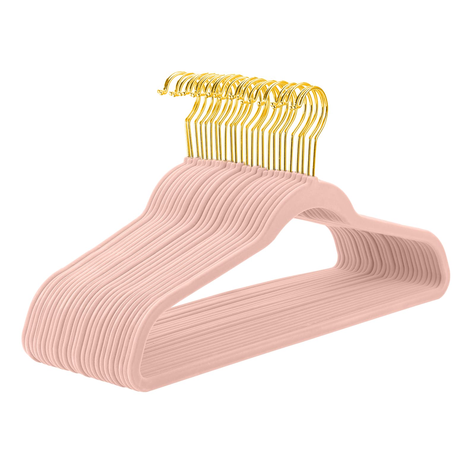 Mizgi Blush Pink Velvet Hangers 60 Pack,Premium Gold Clothes Hangers Non-Slip Felt Hangers,Sturdy Pink Hangers Heavy Duty Coat H