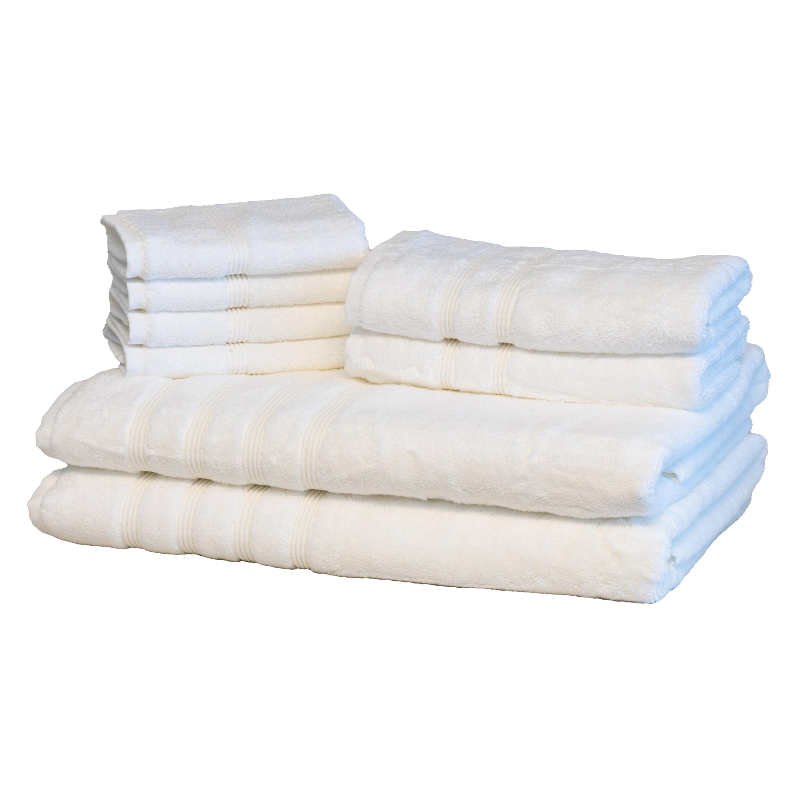 - Q: What are the dimensions of the towels included in the set? A: The set includes two XL Bath Towels measuring 35"x70", two Hand Towels measuring 16"x30", and four Face Cloths measuring 13"x13".