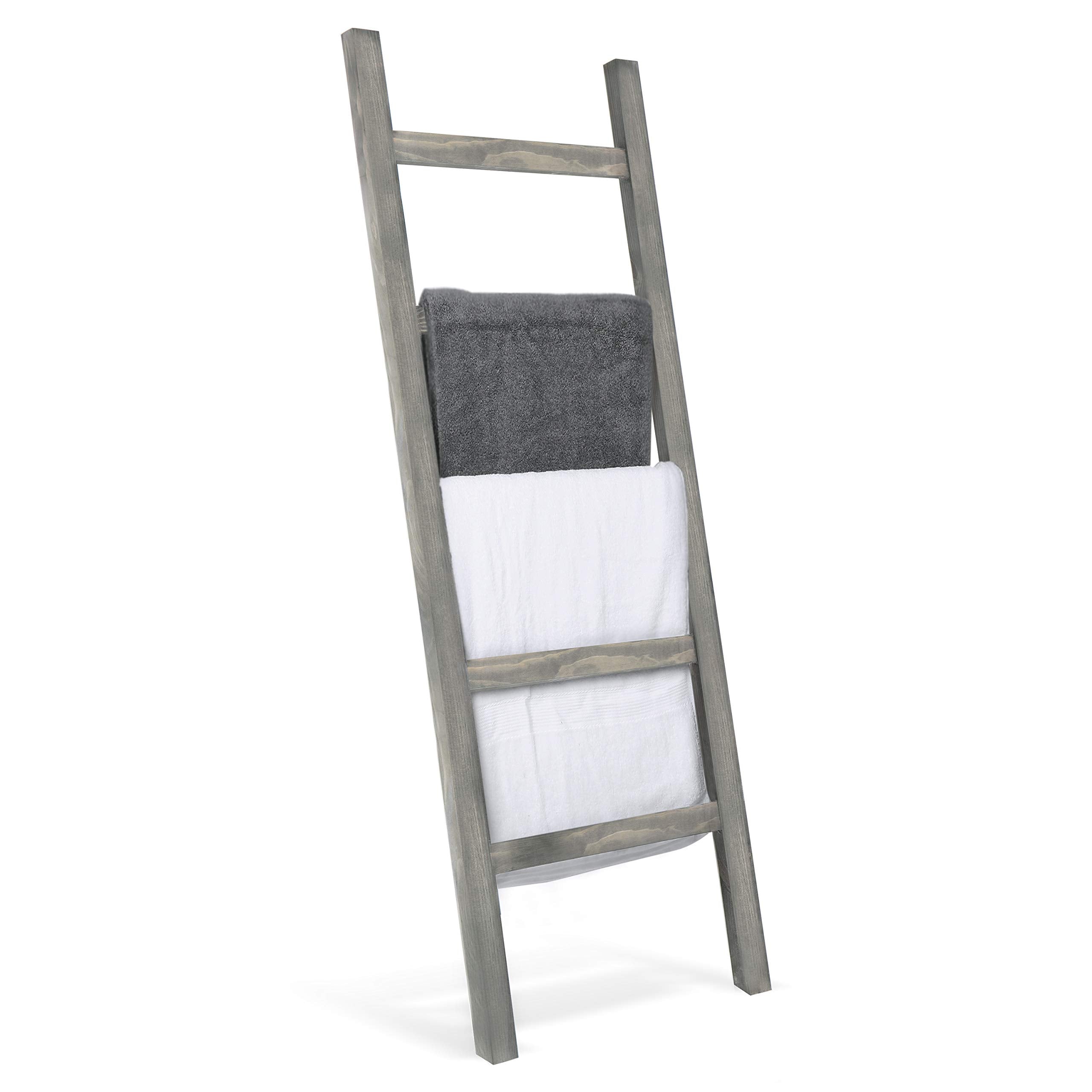 Mygift 54 Inch Tall Fully Assembled Wood Blanket Ladder, 5-Tier Wall Leaning Towel Rack, No Assembly, Gray