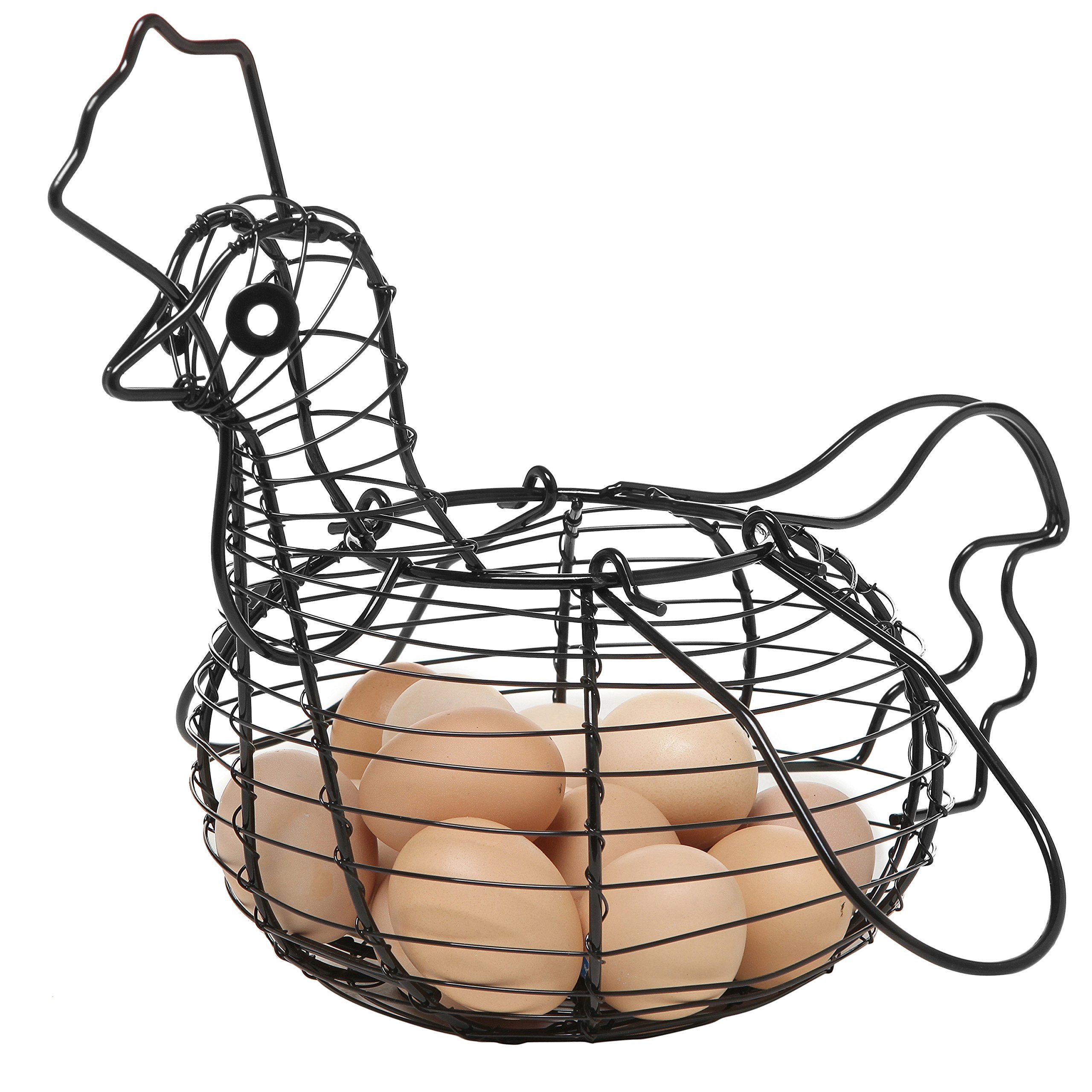 Mygift Black Metal Wire Egg Basket With Chicken Shape Design, Farm Fresh Egg Collecting Basket, Decorative Farmhouse Kitchen Sto