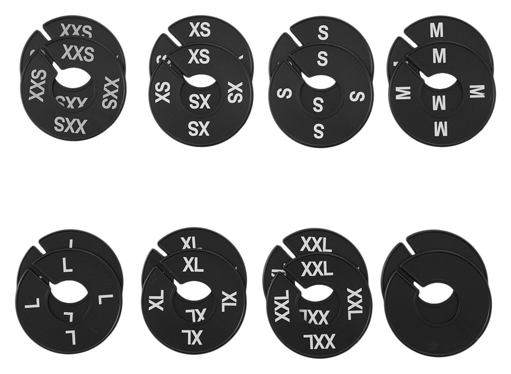 Nahanco Cbwkit3, Black Round Clothing Rack Size Dividers, White Print For Home Or Clothing Store, Xxs-Xxl, Kit Of 16 (7 Sizes An