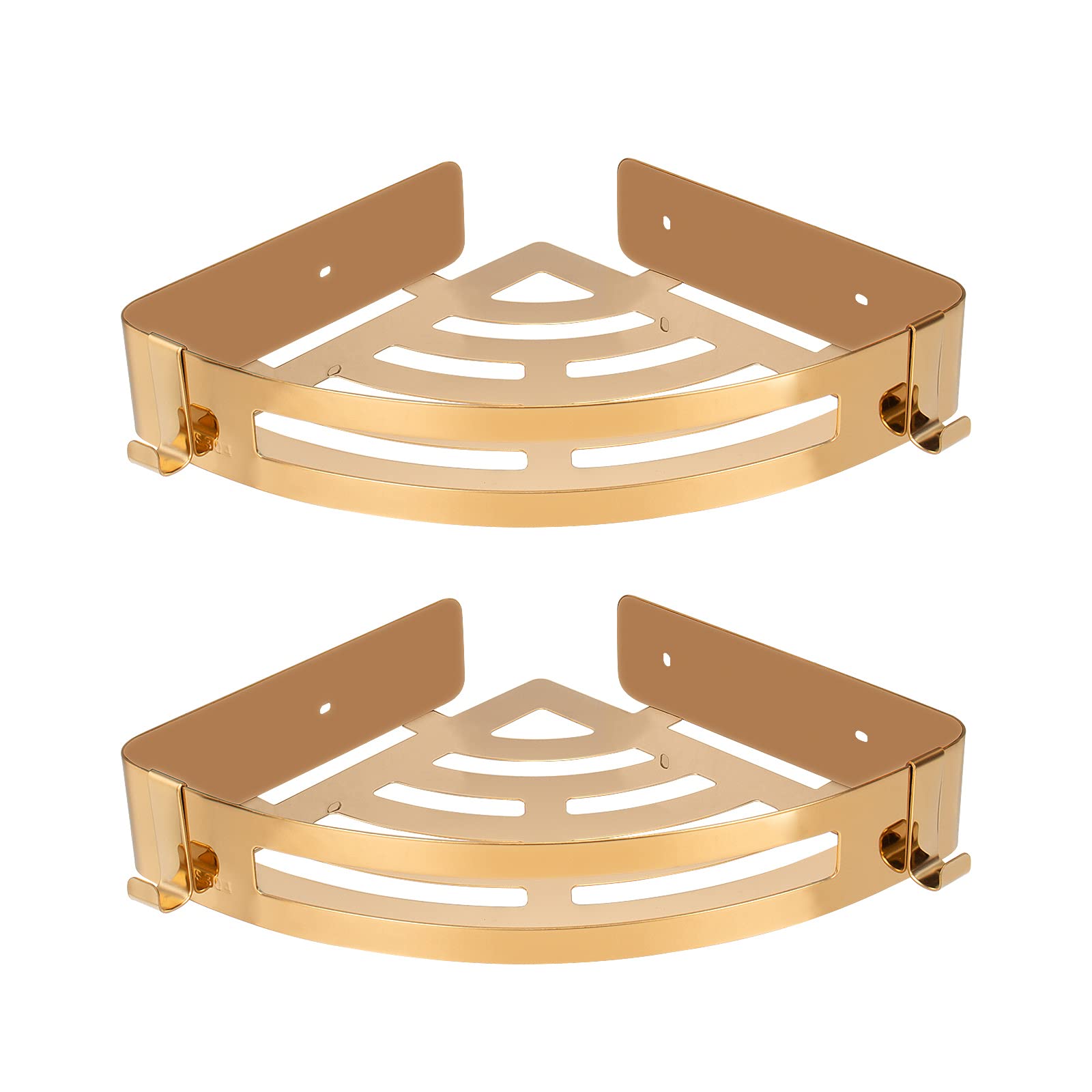 Nearmoon Bathroom Corner Shelf Shower Caddy 2 Pack, No Drill, 304 Stainless Steel, With Two Hooks (Chrome Gold)