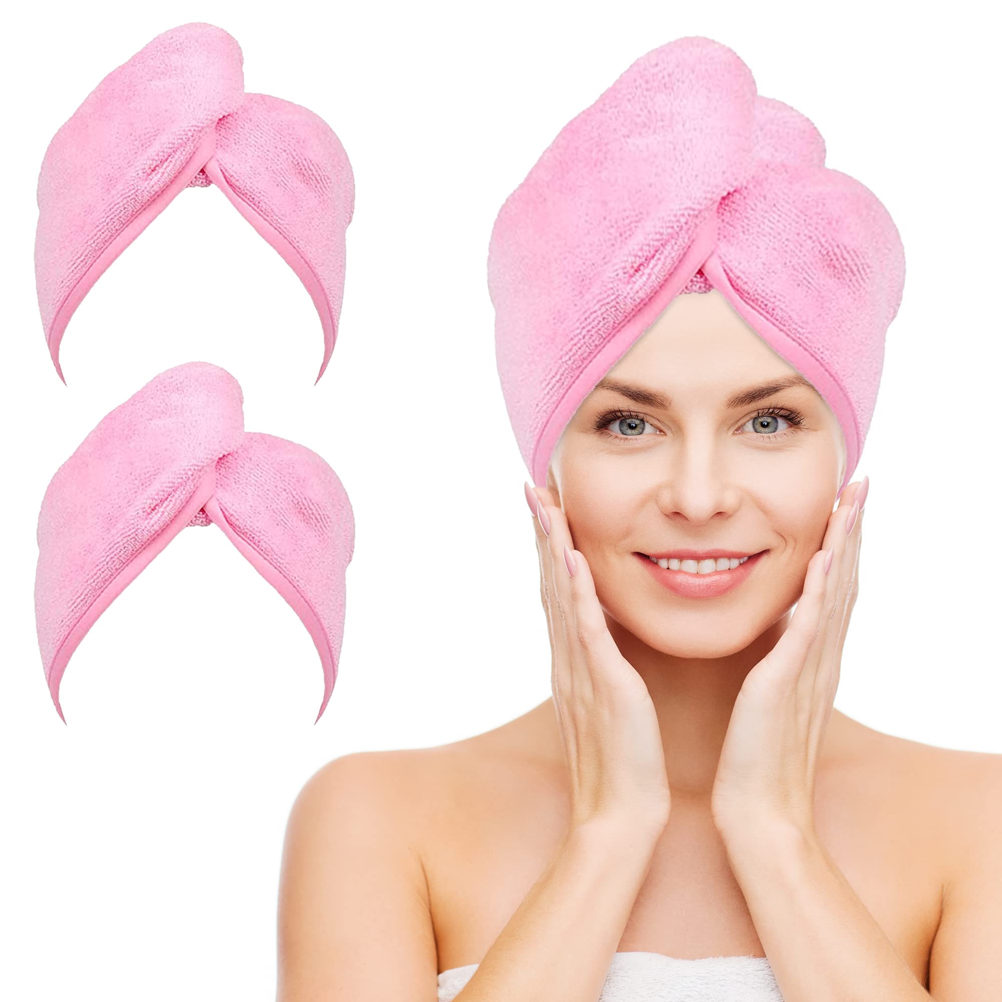 NEXCOVER Hair Towel Microfiber, 2 Pack Pink 9.8 inch X 25.5 inch Hair Wrap,Ultra Absorbent Hair Turbans,Fast Drying Head Towels
