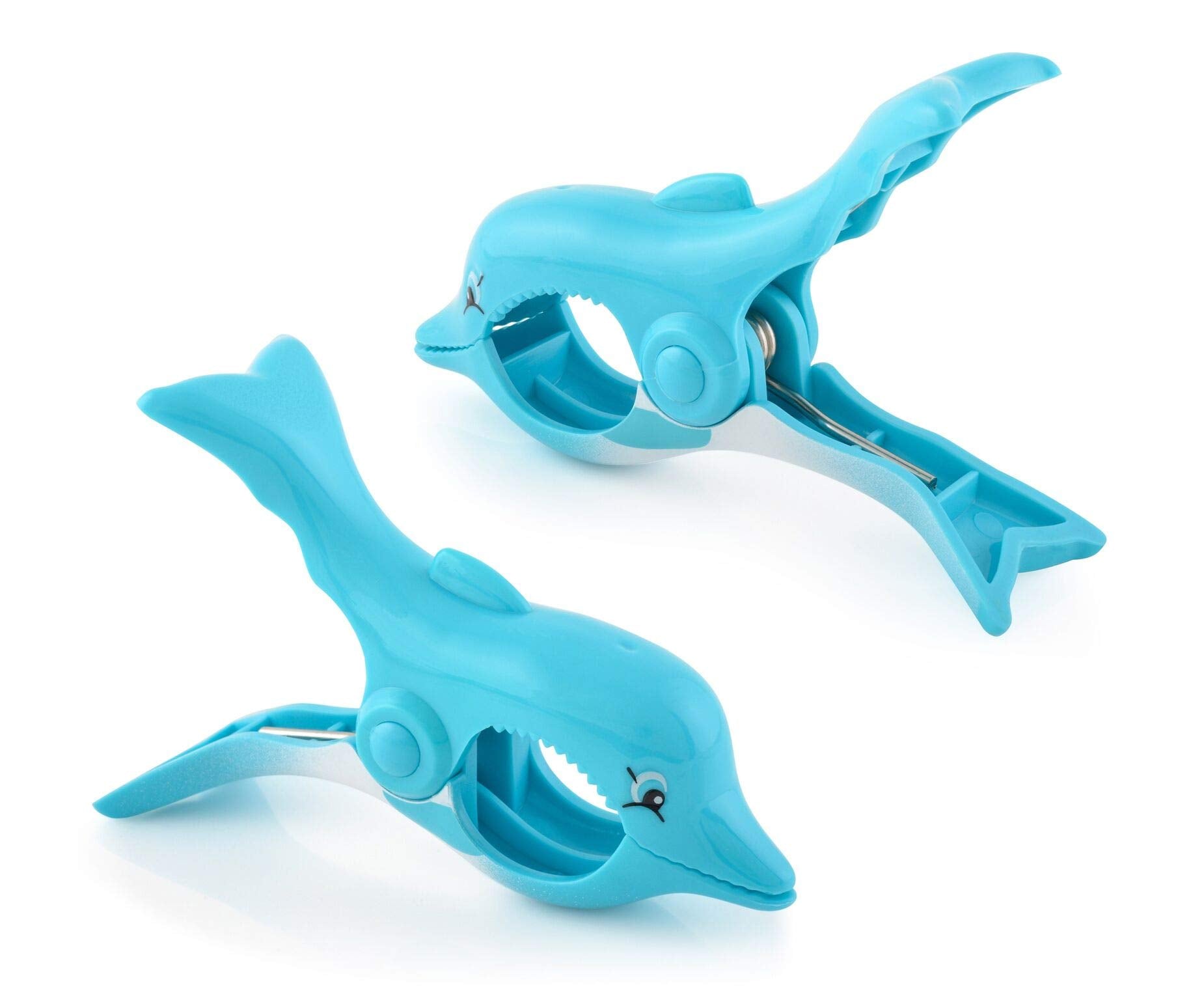 O2Cool Bocaclips - Beach Towel Clips For Beach Chairs, Patio And Pool Accessories - (Dolphin) 2 Count