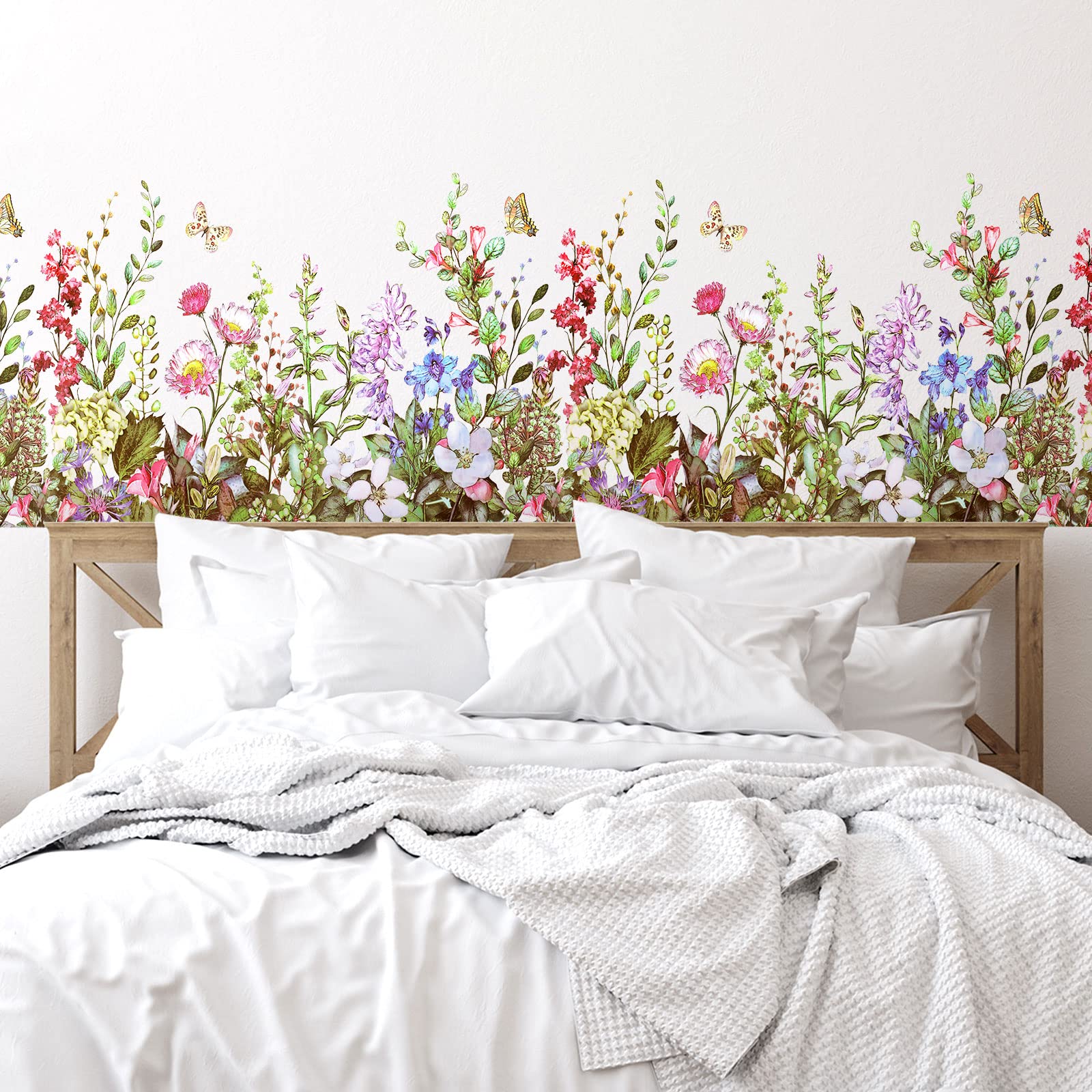 Outus Flower Wall Decals Floral Butterfly Wall Stickers Wildflower Greenery Wall Decor Removable Peel And Stick Art Murals For K