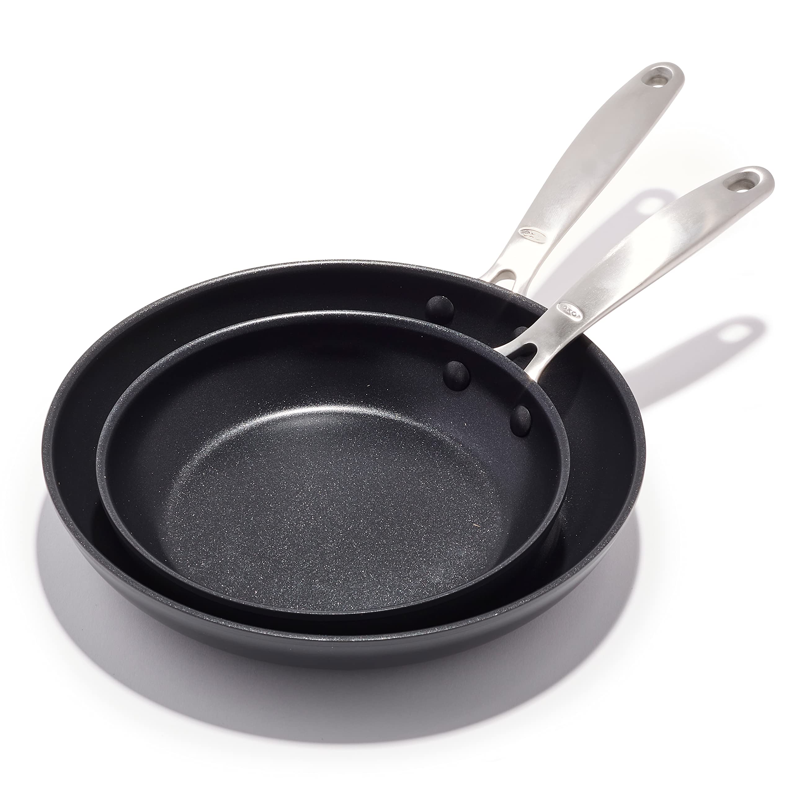 - Q: What is the size of the OXO Good Grips Pro frying pan skillet set? A: The OXO Good Grips Pro frying pan skillet set includes two sizes: an 8-inch skillet and a 10-inch skillet.