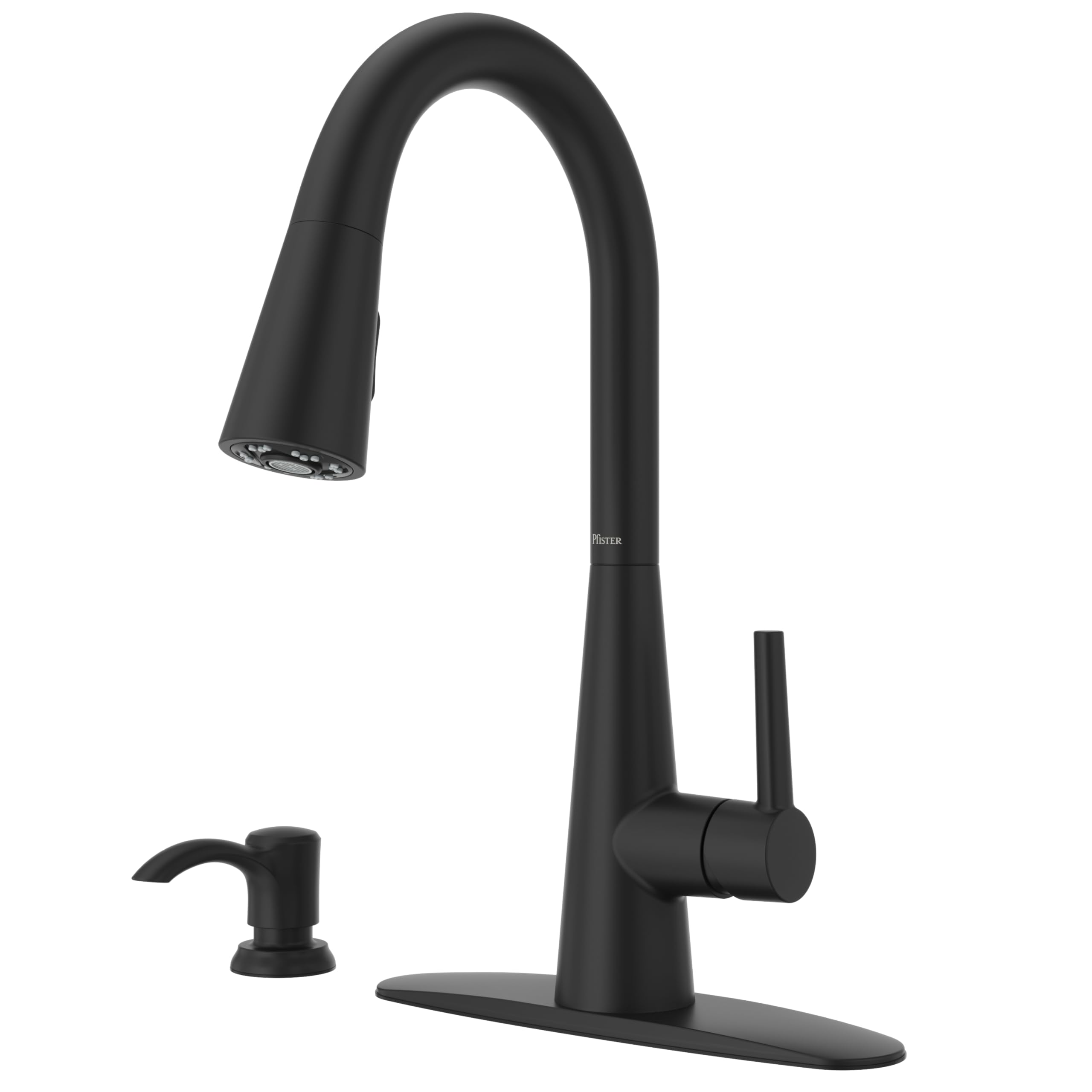 Pfister Barulli Kitchen Faucet With Pull Down Sprayer And Soap Dispenser, Single Handle, High Arc, Matte Black Finish, F5297Barb