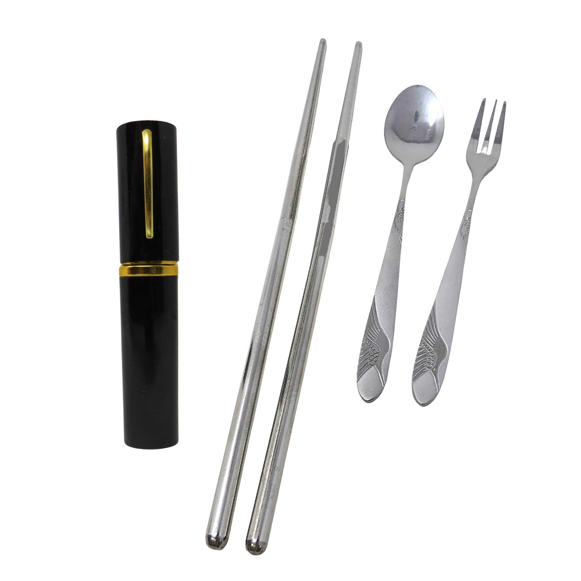 Portable Utensil Set With Stain Resistant Chopsticks, Fork, And Spoon, Travel Utensils For Purses And Backpacks, Black