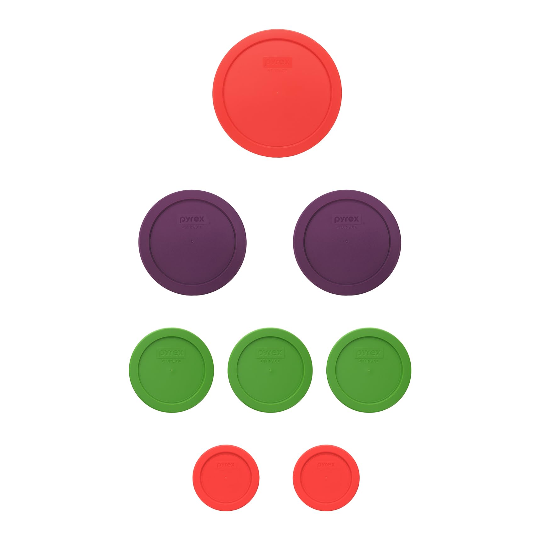 Pyrex (2) 7202-Pc-Ro-Rd, (3) 7200-Pc-Ro-Gn, (2) 7201-Pc-Ro-Pur, (2) 7402-Pc-Ro-Rd Replacement Lids