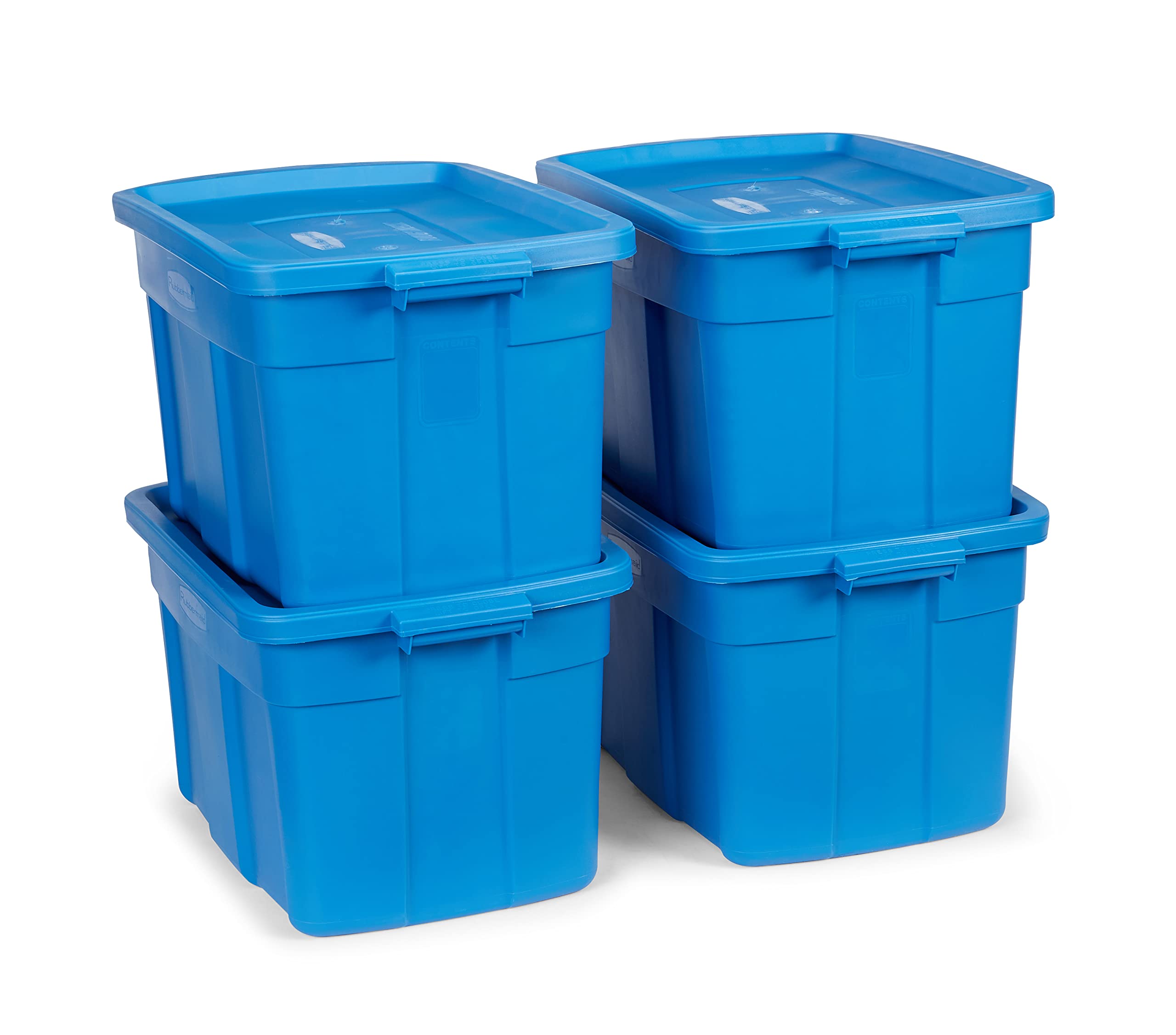 Rubbermaid Roughneck? 25 Gallon Storage Totes, Pack Of 4, Durable Stackable Storage Containers With Lids, Nestable Plastic Stora