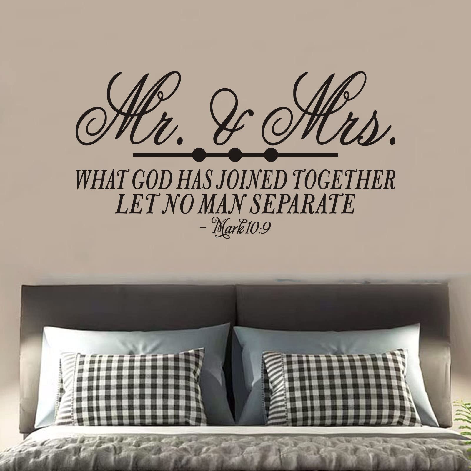 SEATUNE Wall Decals for Women Bible Verse Wall Decals Quotes Love Couples Positive Marriage Married Headboard Life Home Vinyl Art Stickers Mr and Mrs What God Has Joined Together Let Mark 28.6''X15''