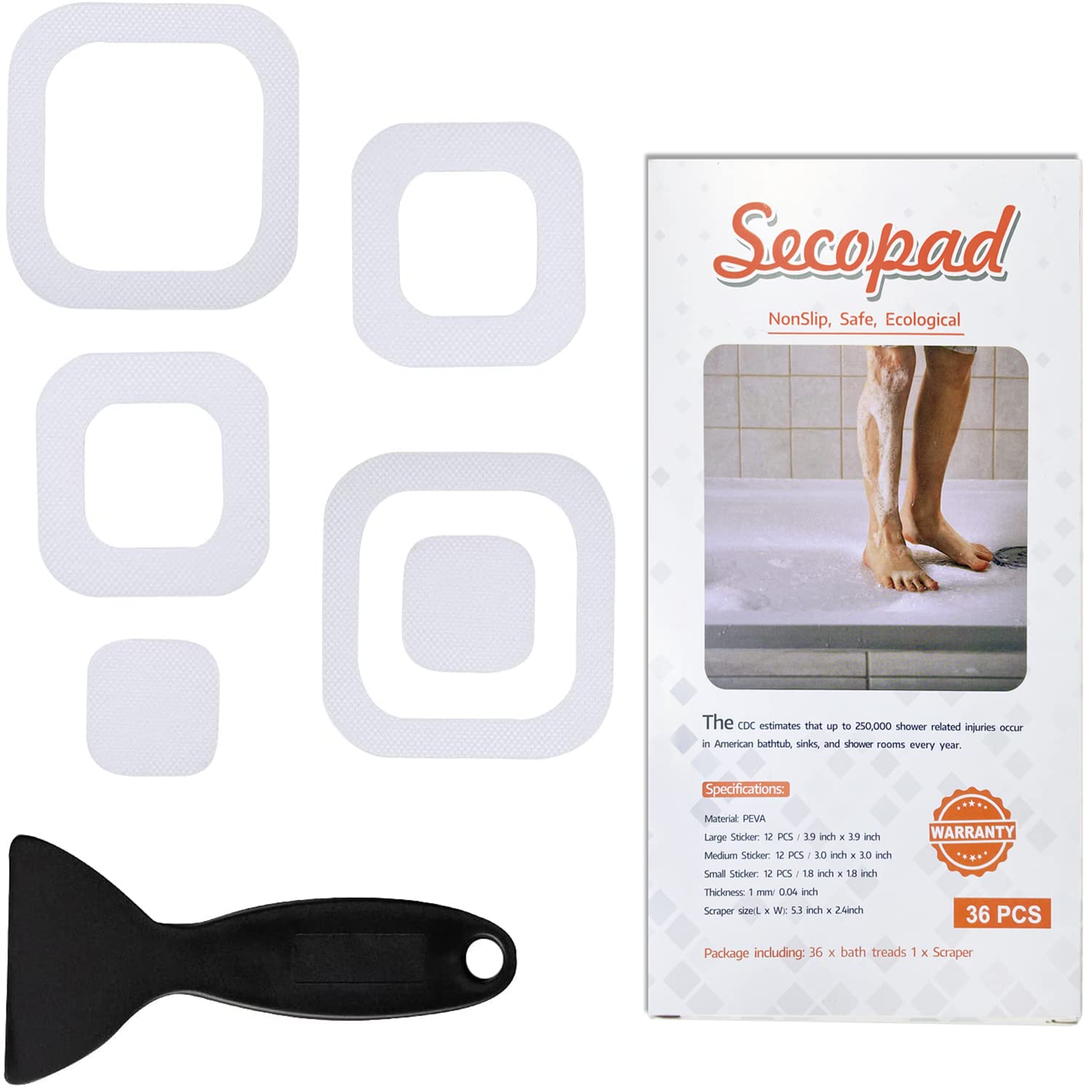Secopad Non-Slip Bathtub Stickers, 36 Pcs Safety Bathroom Tubs Showers Treads Adhesive Decals Scraper (Clear)