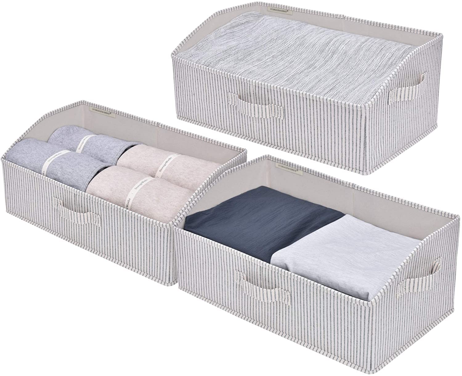 StorageWorks Closet Baskets Fabric Baskets for Closet Shelves Foldable Trapezoid Storage Bins Mixing of Nature & Blue 3-Pack