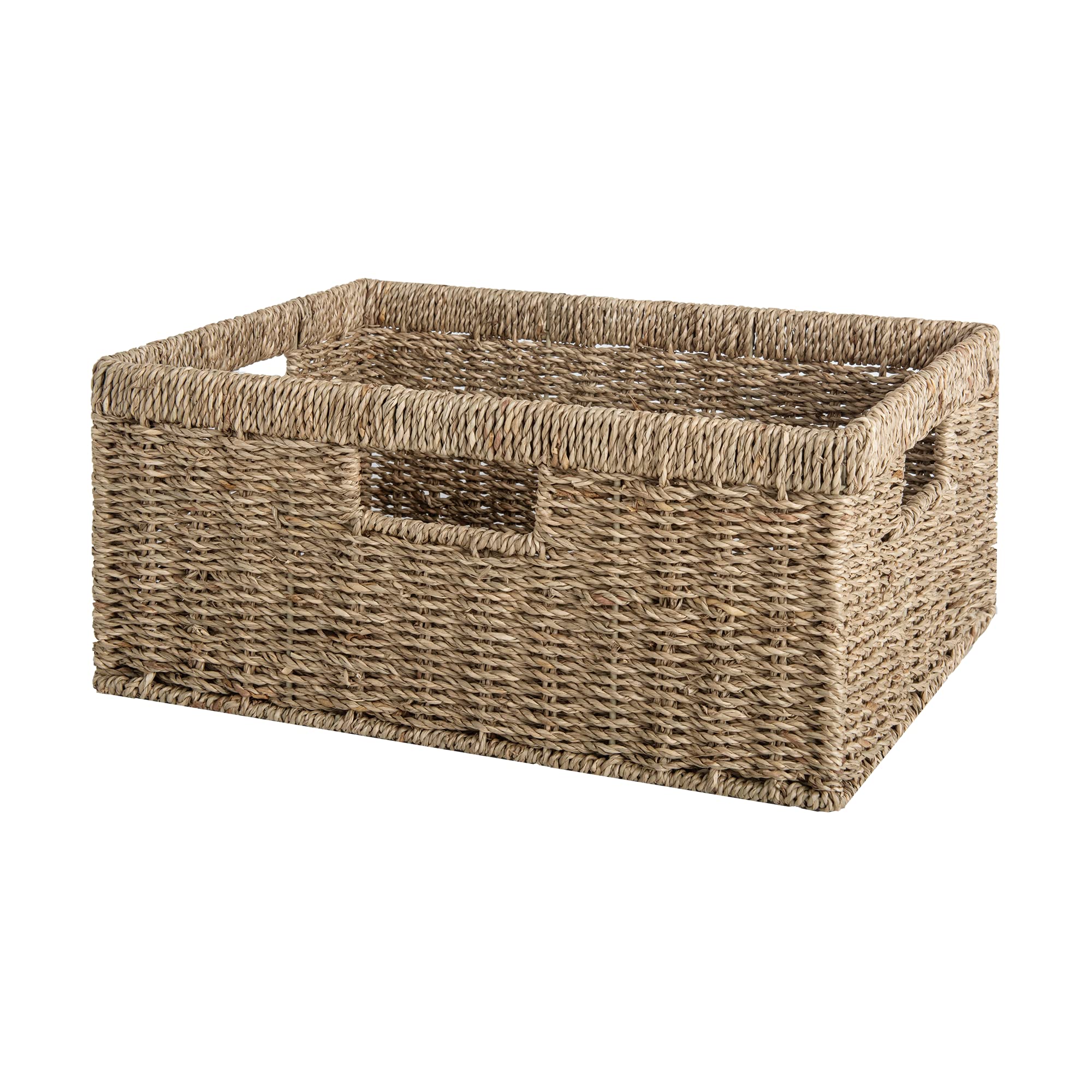 StorageWorks Large Wicker Storage Basket Seagrass Rectangle Basket with Built-in Handles Handwoven Rattan Basket for Blanket 1 Pack