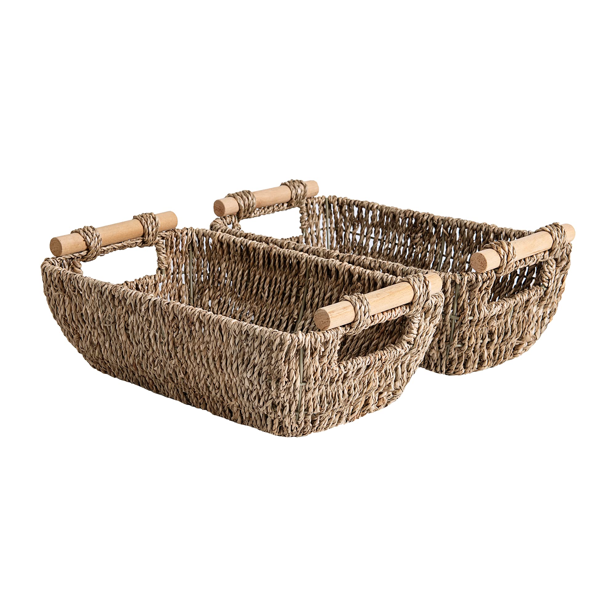 StorageWorks Small Wicker Baskets Handwoven Baskets for Storage Seagrass Rattan Baskets with Wooden Handles 2-Pack