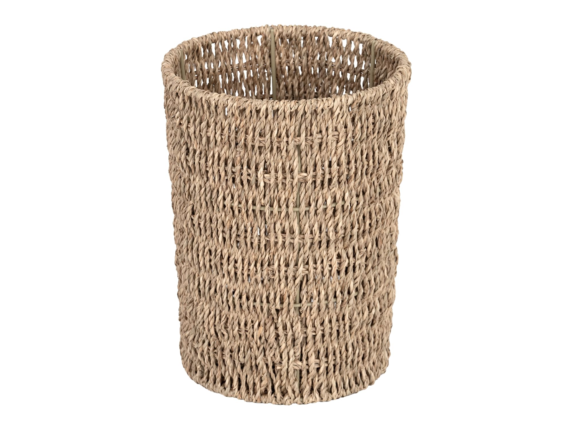 Storageworks Wicker Waste Basket, Small Trash Can, Wicker Trash Basket With Handwoven Seagrass, Wicker Garbage Can For Bedroom,