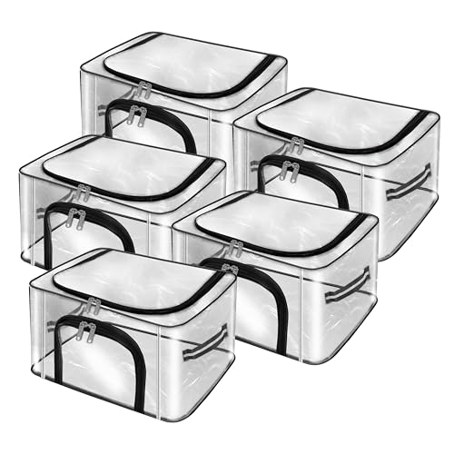 Storite 5 Pack 28 L Transparent Pvc Wardrobe Bag Underbed Moisture Proof Cloth Storage Organizer, Storage Box For Clothes Saree Bags With Zippered Closure & Handle (44 X 31 X 21 Cm)