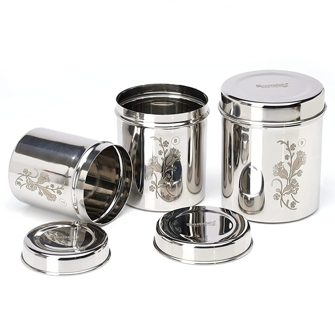 Sumeet Designer Stainless Steel Vertical Canisters/Ubha Dabba/Storage Containers Set Of 3Pc (400Ml,500Ml,750Ml)