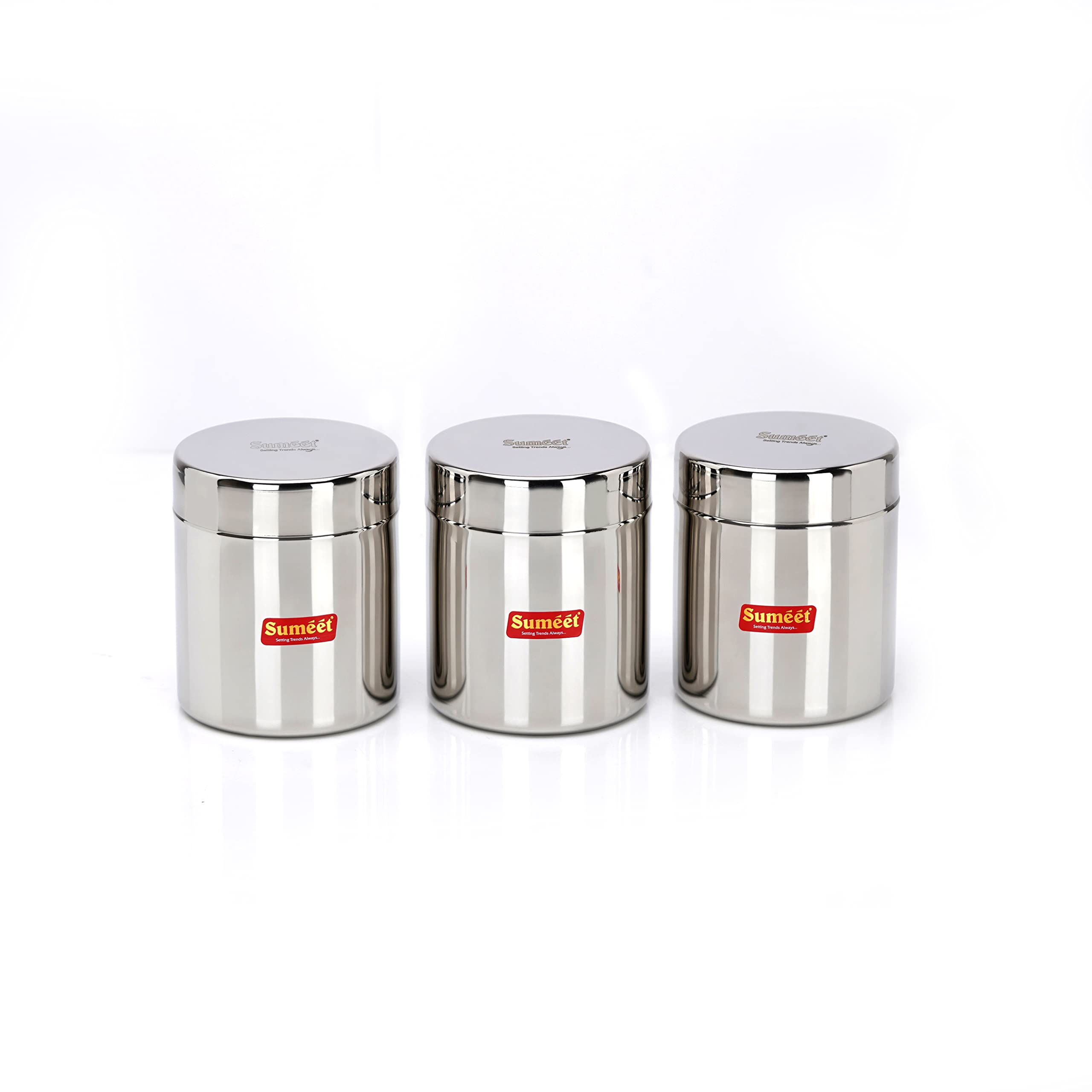 Sumeet Stainless Steel Small Canisters/Jars/Ubha Dabba/Storage Containers Set Of 3Pcs, 350 Ml Capacity Each, 7.5Cm Dia, Silver