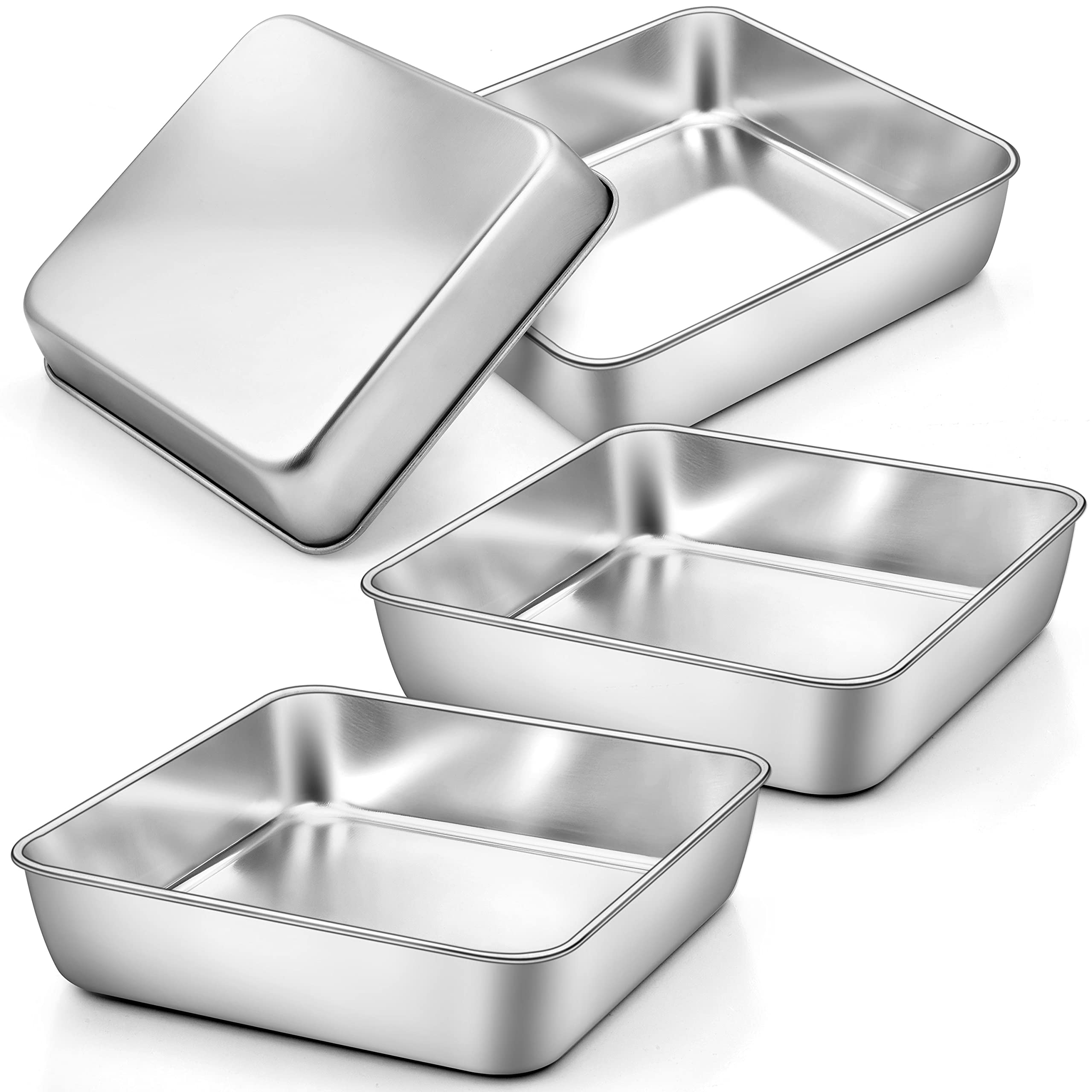 - Q: How many pieces are included in the set? A: The set includes 4 pieces of the 8 Inch Square Baking Pan.
