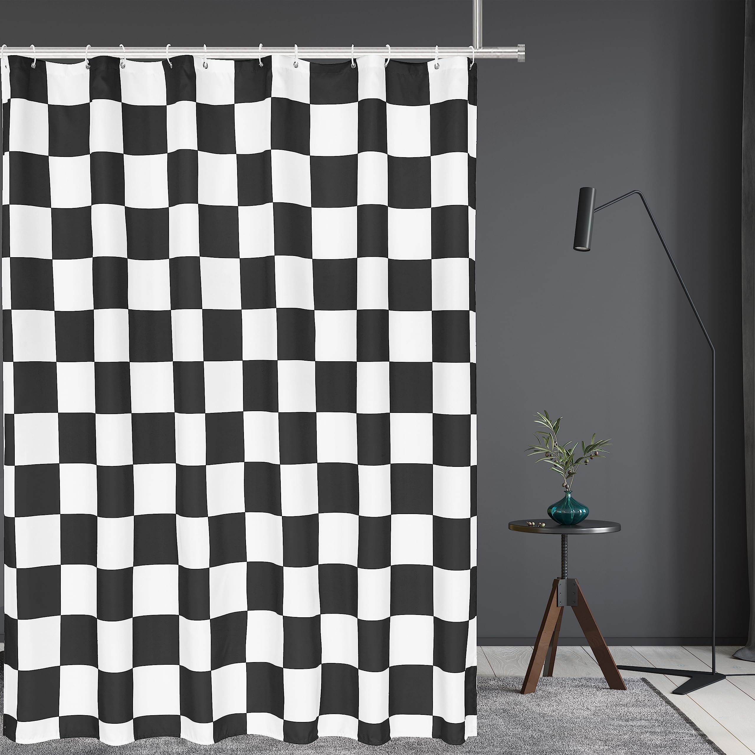 Tititex Aesthetic Checkerboard Grid Pattern Shower Curtain, White Black Modern Shower Curtain Sets Decoration 71X71 Inch With Ho