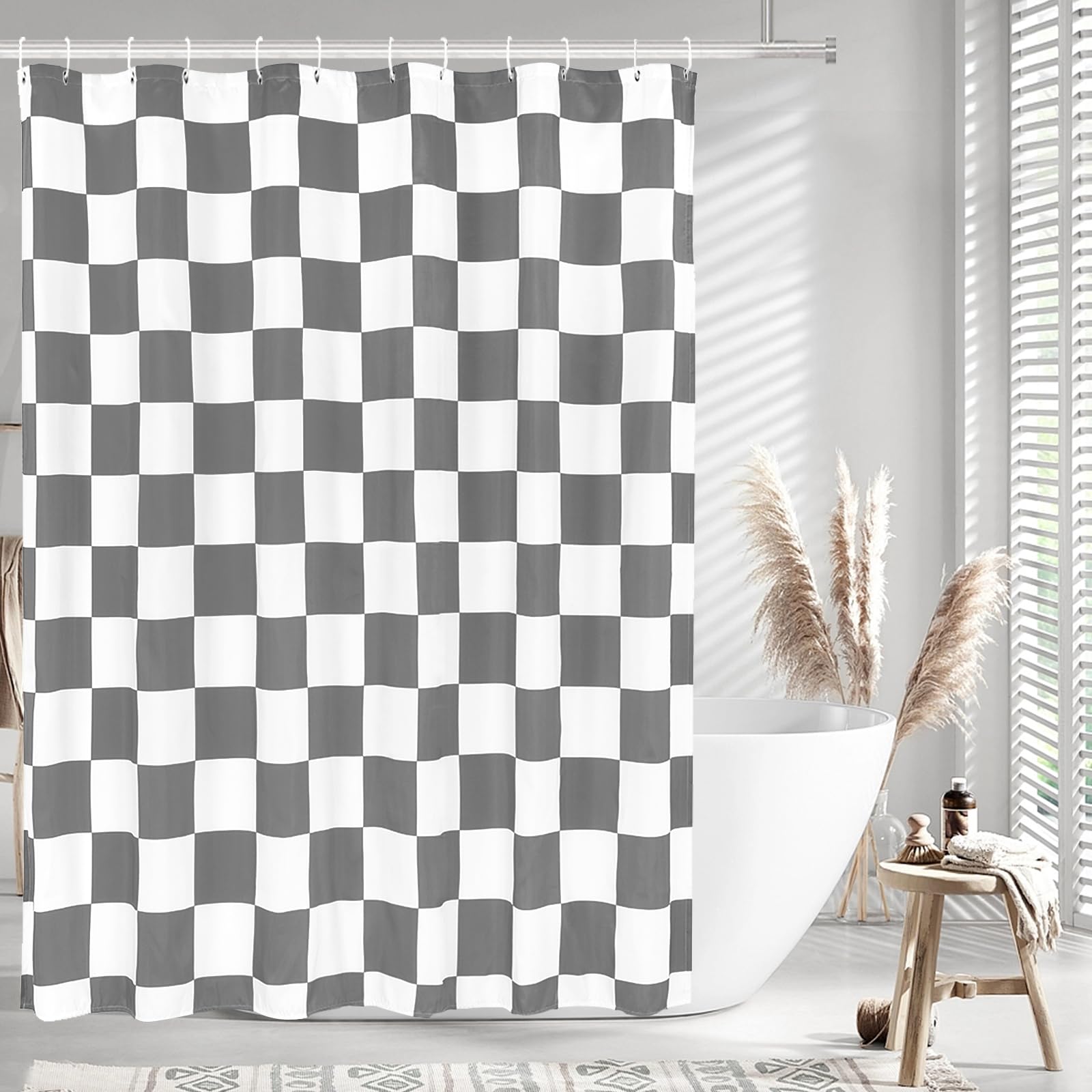Tititex Aesthetic Checkerboard Grid Pattern Shower Curtain, White Grey Modern Shower Curtain Sets Decoration 71X71 Inch With Hoo