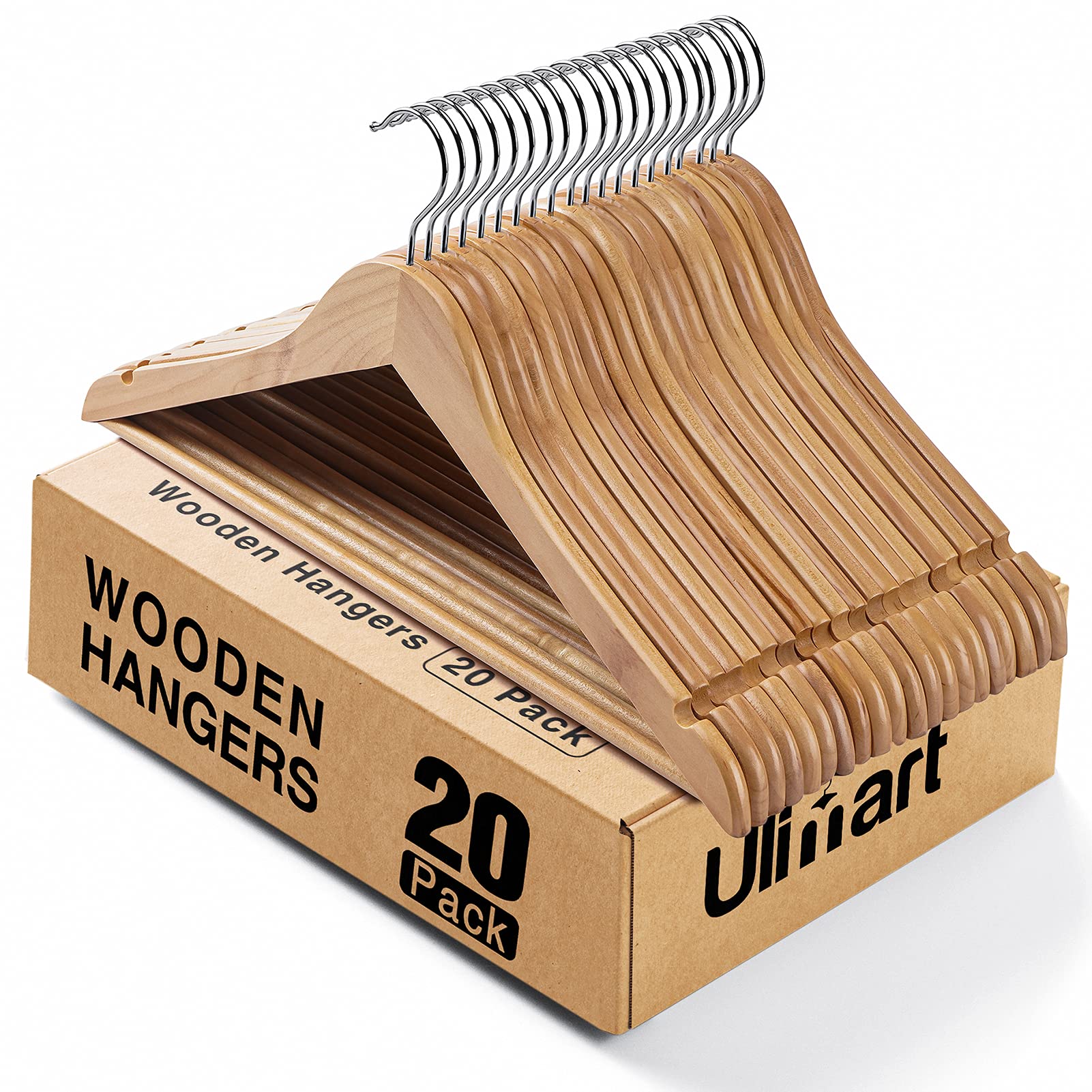 Ulimart Wood Hangers 20 Pack Smooth Finish Wooden Hangers Durable Clothes Hangers for Coat Jacket Pant Dress Coat Hangers for Closet (Natural)