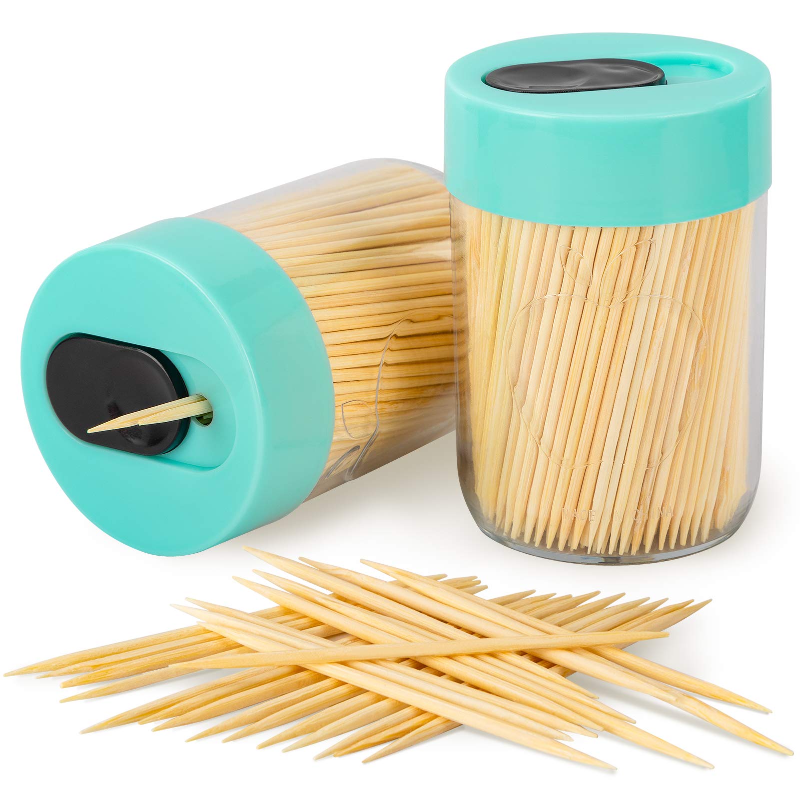 Urbanstrive Sturdy Safe Toothpick Holder With 800 Natural Wood Toothpicks For Teeth Cleaning, Unique Home Design Decoration, 2 P