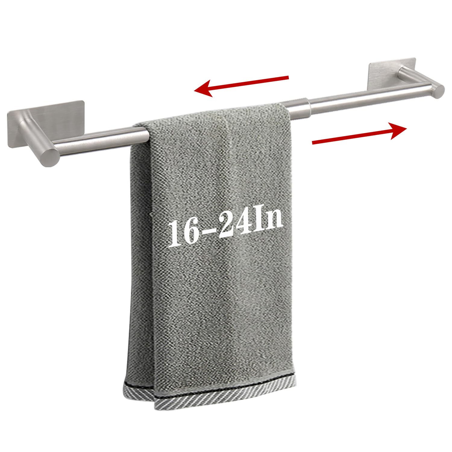 Vanloory Self Adhesive Bath Towel Bar, Stainless Steel Towel Racks For Bathroom Adjustable 16-24In No Drill Towel Holder Stick O