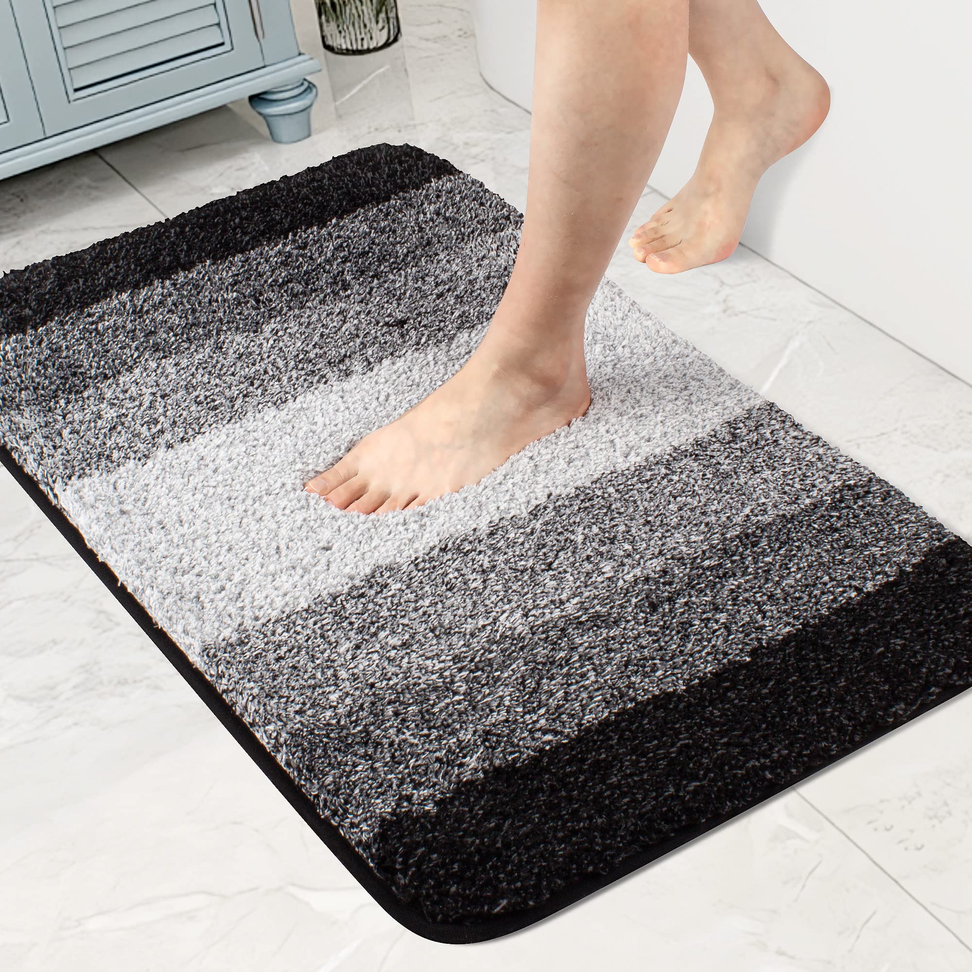 Walensee Bathroom Rug Non Slip Bath Mat For Bathroom (16 X 24, Ombre Black) Water Absorbent Soft Microfiber Shaggy Bathroom Mat