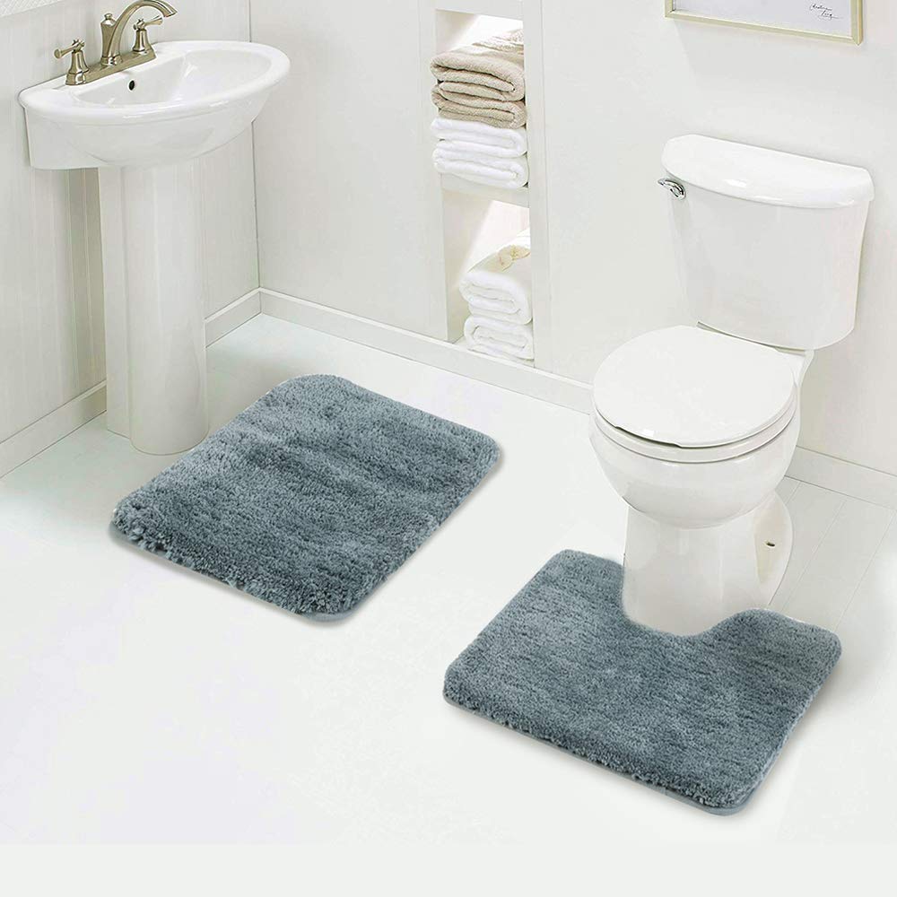 Walensee Shaggy 2 Piece Bath Rug Set (Slate) 20 X 24 U Shape Contour Rug & 20 X 32 Bathroom Rug Machine Wash/Dry Bath Mats For B
