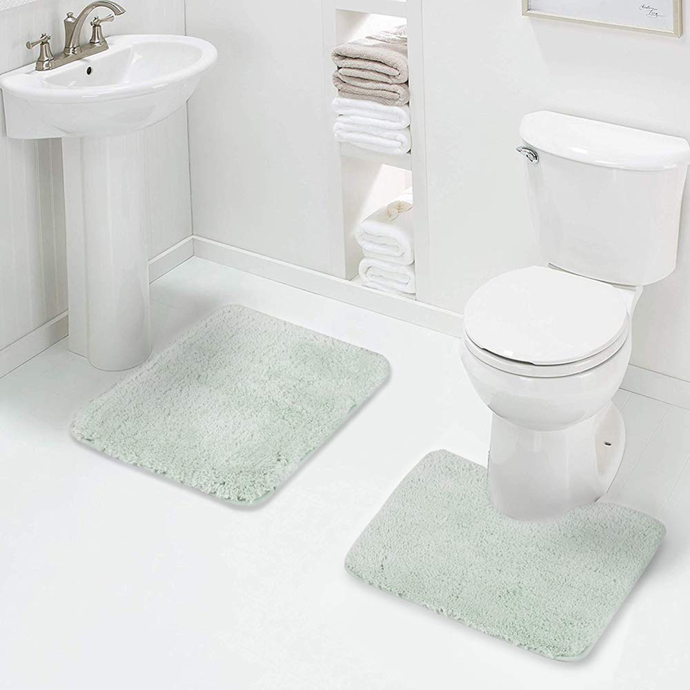 Walensee Shaggy 2 Piece Bath Rug Sets (Pale Green) 20 X 24 U Shape Contour Rug & 20 X 32 Bathroom Rug Machine Wash/Dry Bath Mats