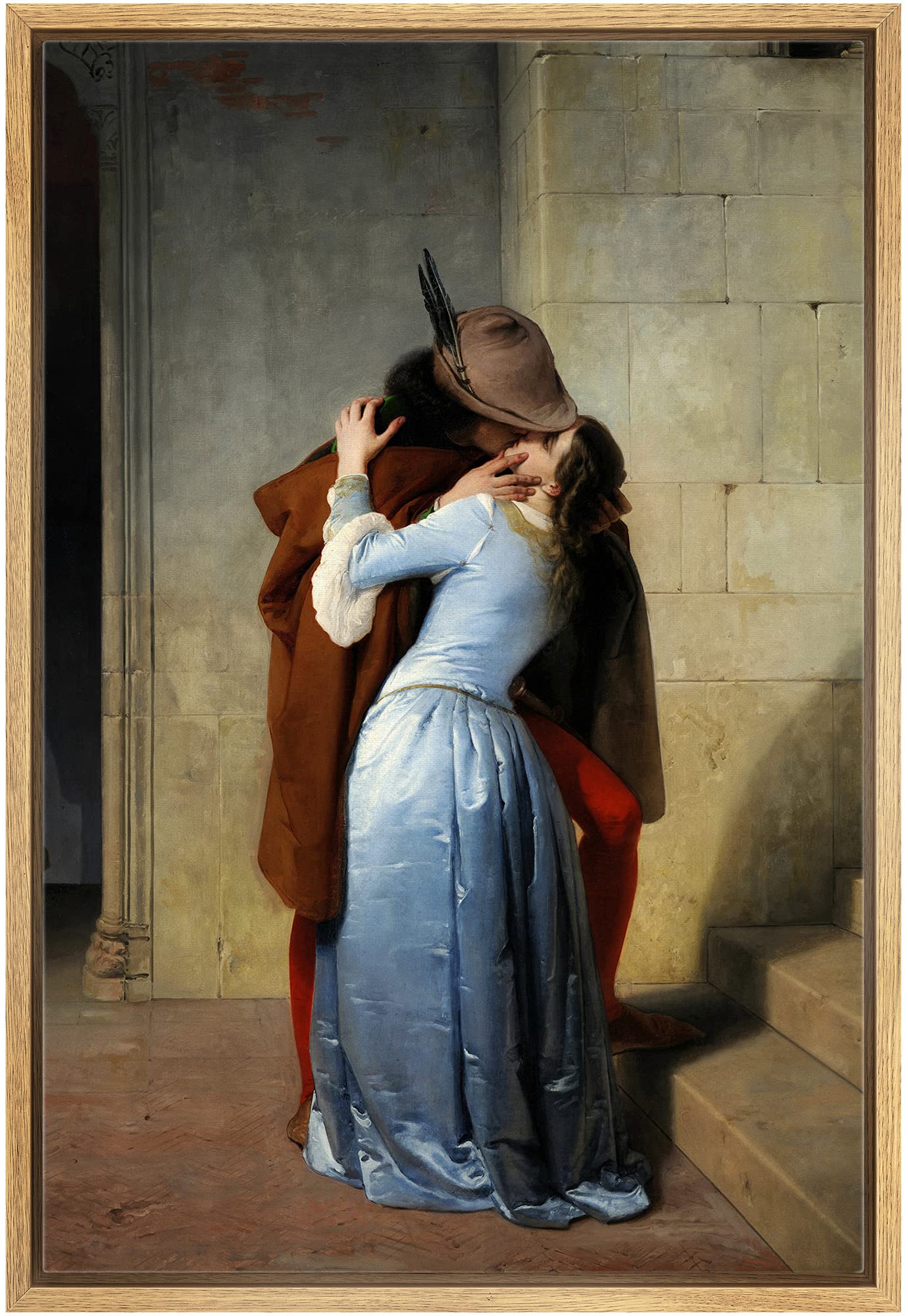 Wall26 The Kiss (Il Bacio) By Francesco Hayez - Framed Canvas Print Wall Art Famous Painting Reproduction - 16''X24'' Natural
