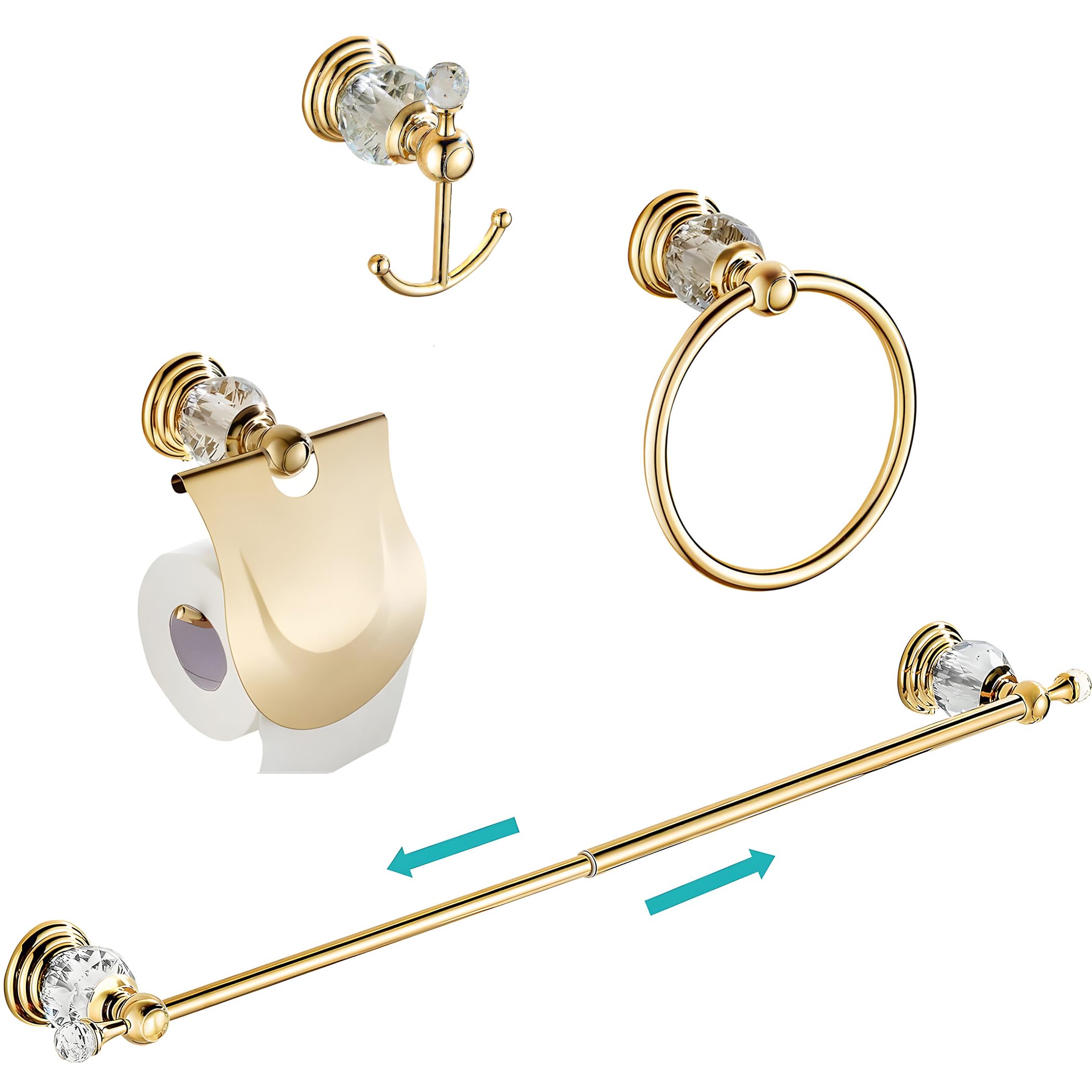 WINCASE Gold Bathroom Accessories Adjustable Crystal Towel Bar Set Golden Hardware Set Hand Towel Ring Racks Paper Holder Hook Wall Mounted
