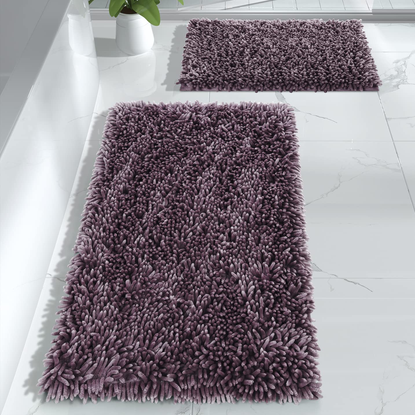 Yimobra Bathroom Rugs Sets 2 Piece Shaggy Thick Non Slip Bath Rugs for Bathroom Floor Contour Ultra Absorbent Plush Bath Mat for Shower Machine Wash 31.5 x 19.8 + 24 x 17 Inches Dark Purple