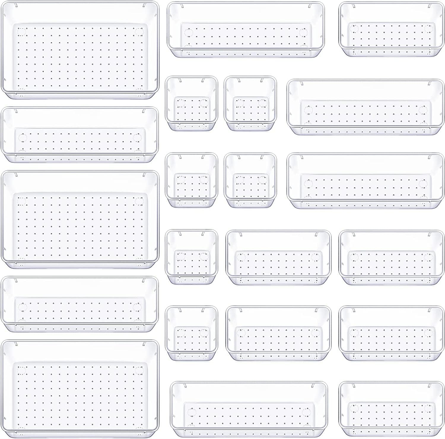 Zollyss Bathroom Drawer Tray Dividers Plastic Vanity Organizers Storage Bins for Makeup Dresser Tray, Clear (21 Pcs)