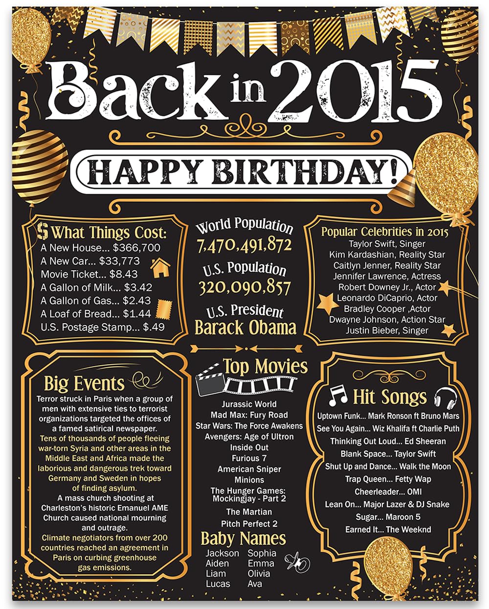 10th Birthday Party Decorations for 10th Birthday (Ten) - Remembering The Year 2015 - Party Supplies - Gifts for Men and Women T