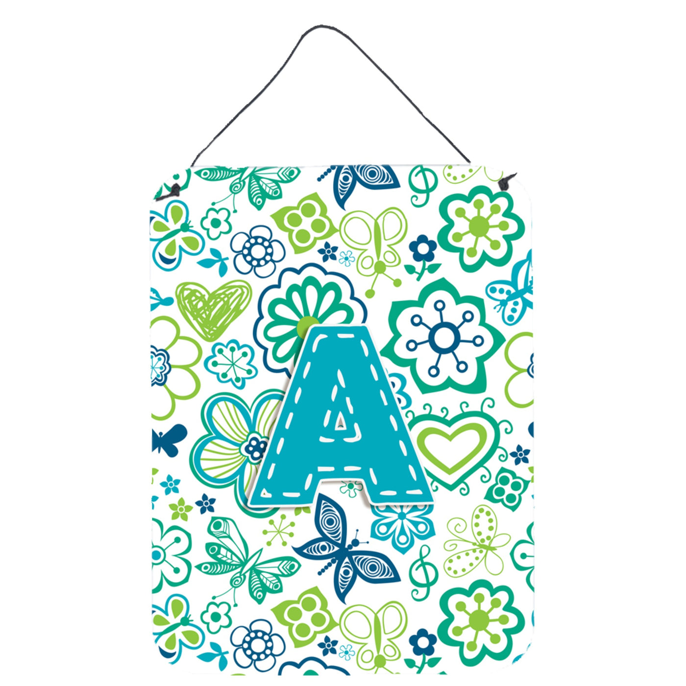 'Caroline's Treasures CJ2006-ADS1216 Letter A Flowers and Butterflies Teal Blue Wall or Door Hanging Prints 16 x 12'''' Multicolor''