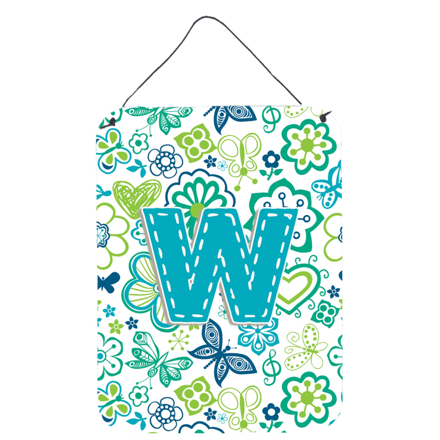 'Caroline's Treasures CJ2006-WDS1216 Letter W Flowers and Butterflies Teal Blue Wall or Door Hanging Prints 16 x 12'''' Multicolor''