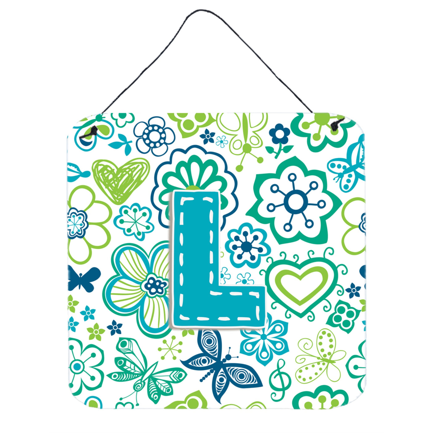 'Caroline's Treasures Letter L Flowers and Butterflies Teal Blue Wall or Door Hanging Prints 6 x 6''''''