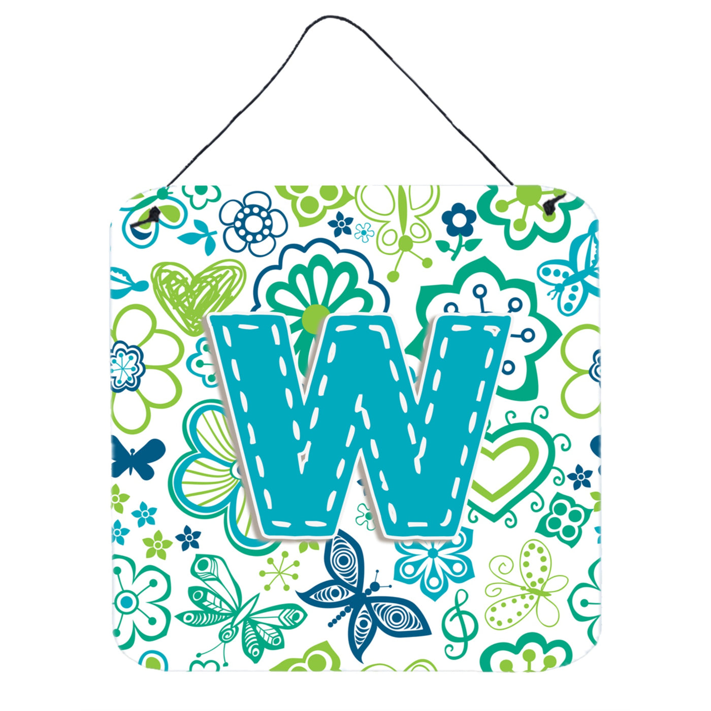'Caroline's Treasures Letter W Flowers and Butterflies Teal Blue Wall or Door Hanging Prints 6 x 6''''''