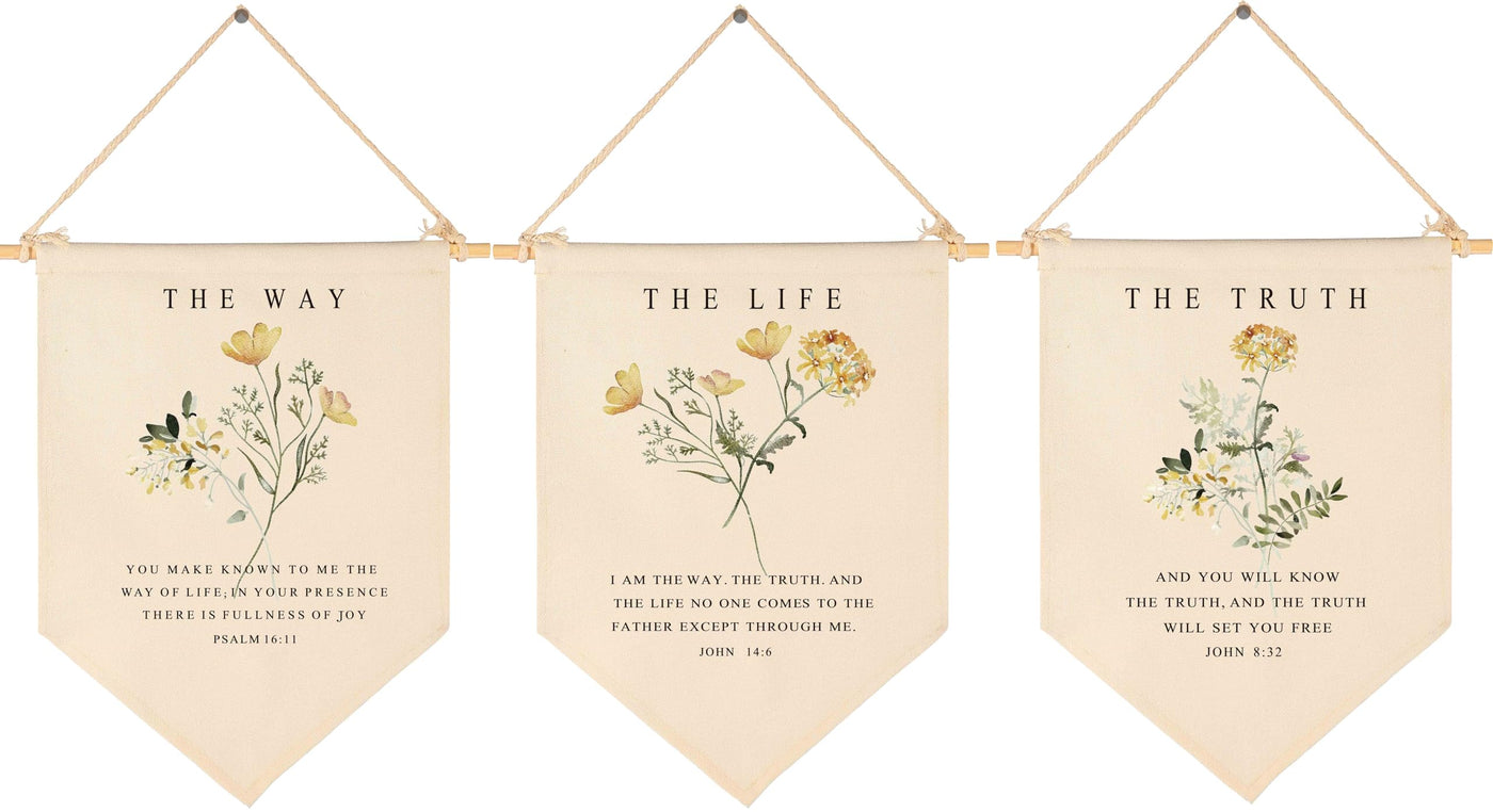 Christian Floral Flag Sign Gifts,The Way,The Truth,The Life,Bible Verse Wall Decor Gifts,Botanical Scripture-Canvas Hanging Penn
