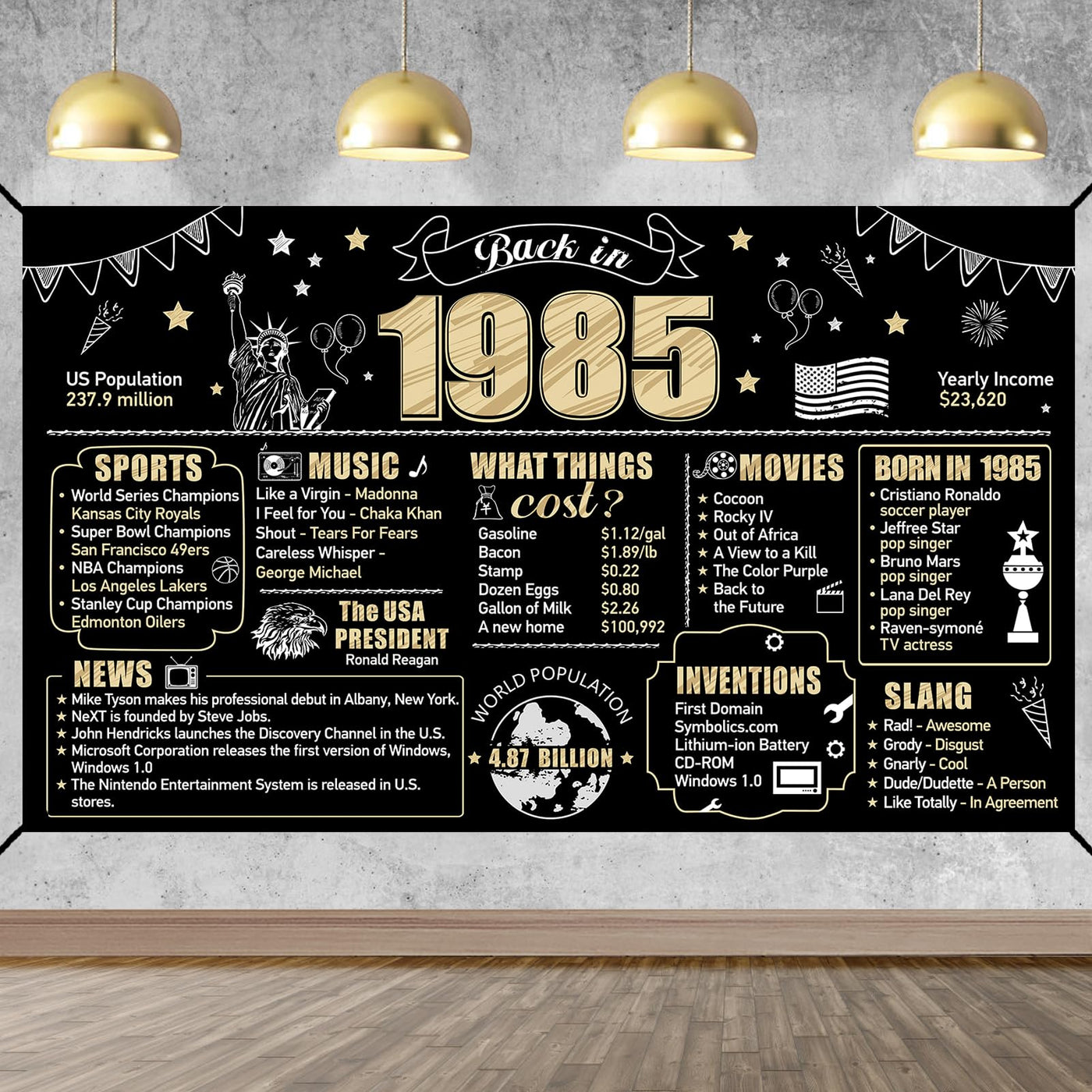 Eiurteao Large 40th Birthday Decorations Back in 1985 Banner Backdrop for Men Women, Happy 40 Birthday Sign Poster Party Supplie