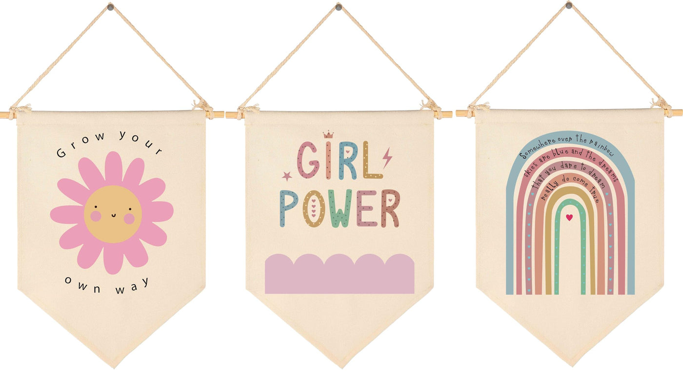Girl Power-Grow Your Own Way-Canvas Hanging Pennant Flag Banner Wall Sign Decor Gift for Baby Boys Girls Kids, Gifts for Nursery