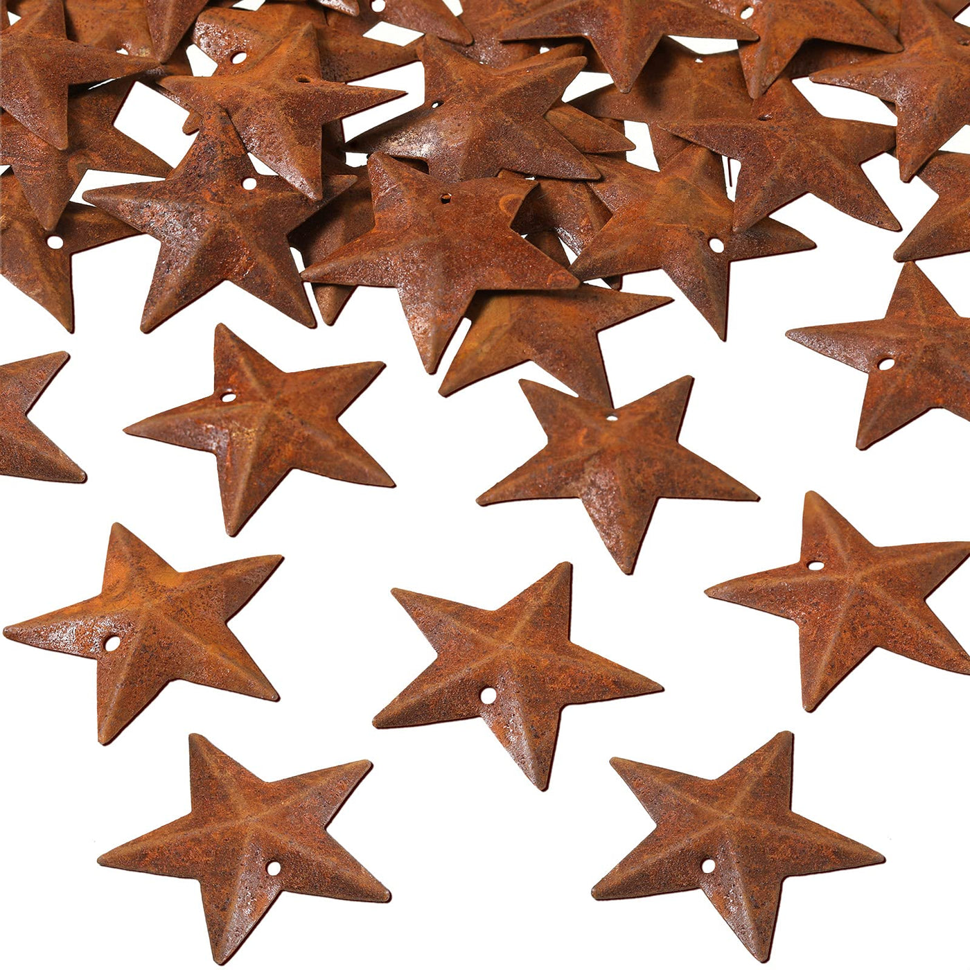 Hotop 24 Pieces Metal Rusty Barn Star for Crafts with Holes 1.18 Inch Antique Primitives Rustic Country Star Craft Ornaments 3D