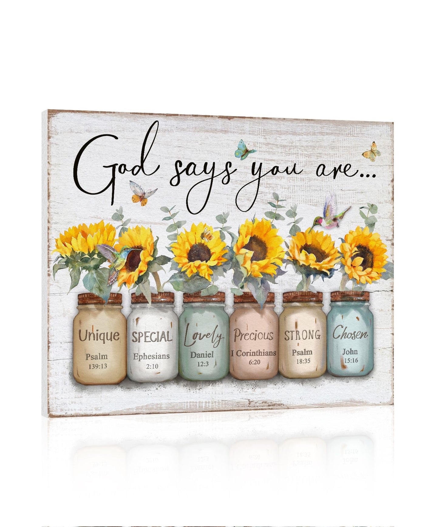 Inspirational Bible Verse Wall Art: God Says You Are Wall Sayings Sunflower in Mason Jar Picture Print Christian Gift Quotes Pos