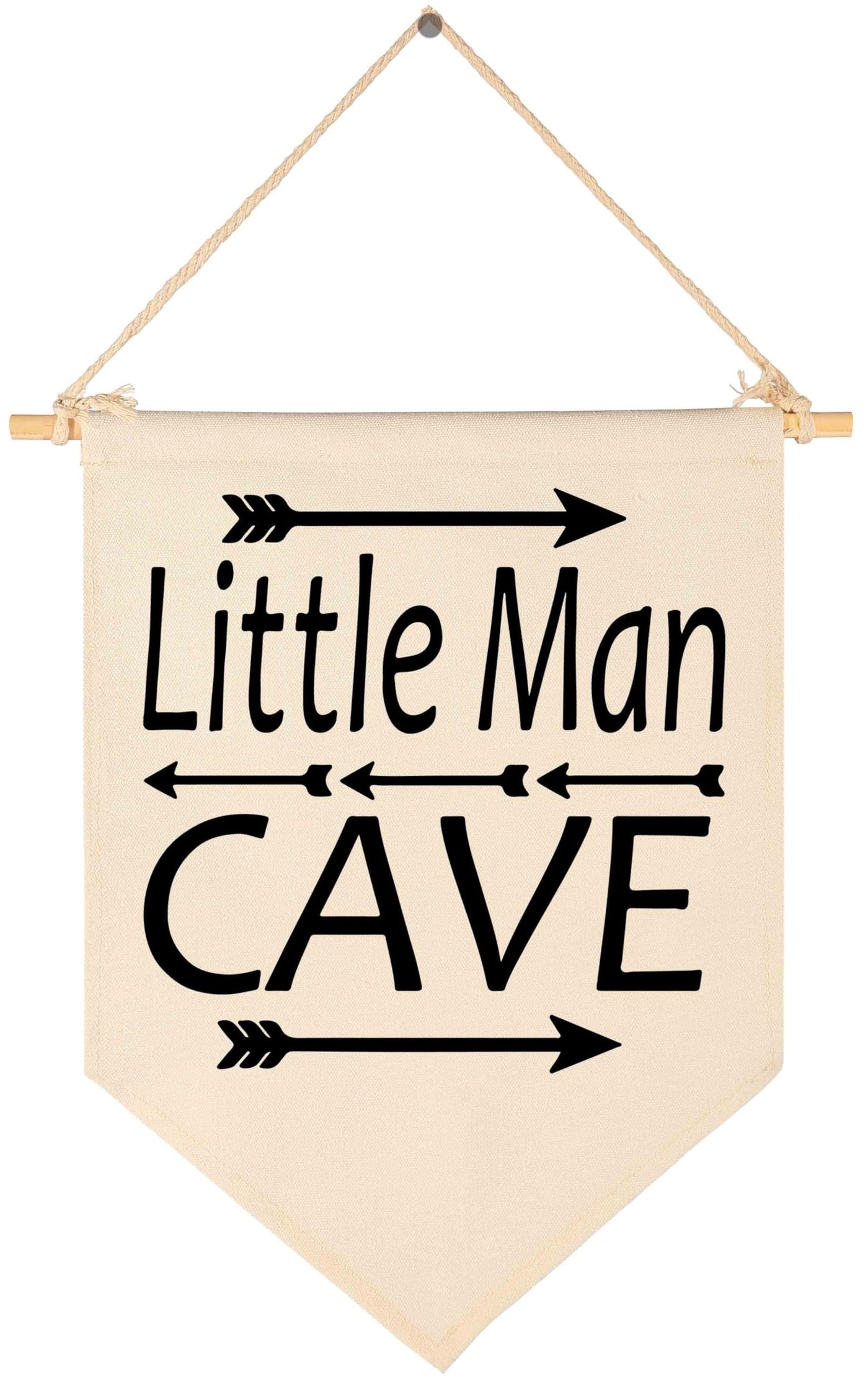 Little Man Cave -Canvas Hanging Flag Banner Wall Sign Decor Gift for Baby Kids Boy Nursery Teen Room Front Door