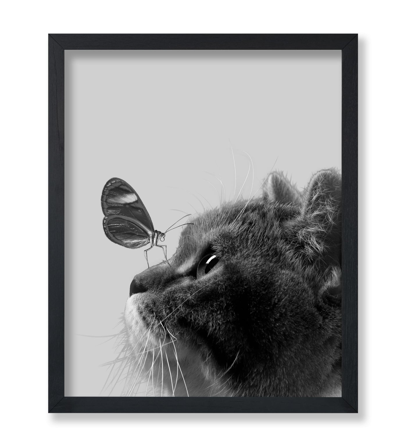 Poster Master Butterfly on Cat Print - Animal Poster - Black & White Photography Art - Gift for Veterinarian, Animal Lovers - Wa
