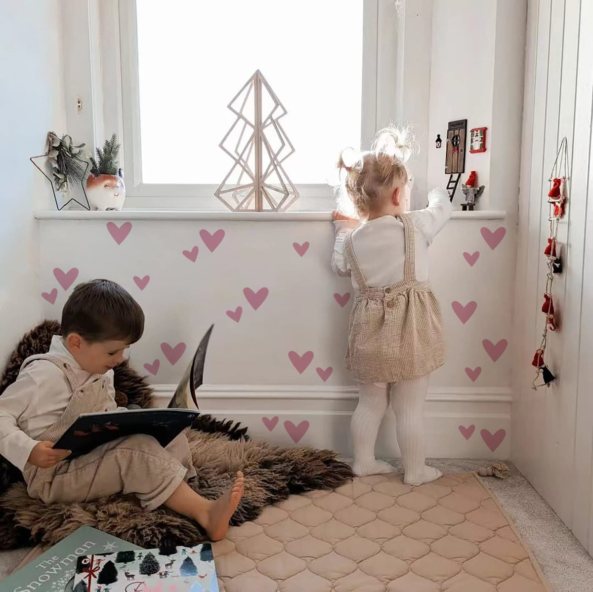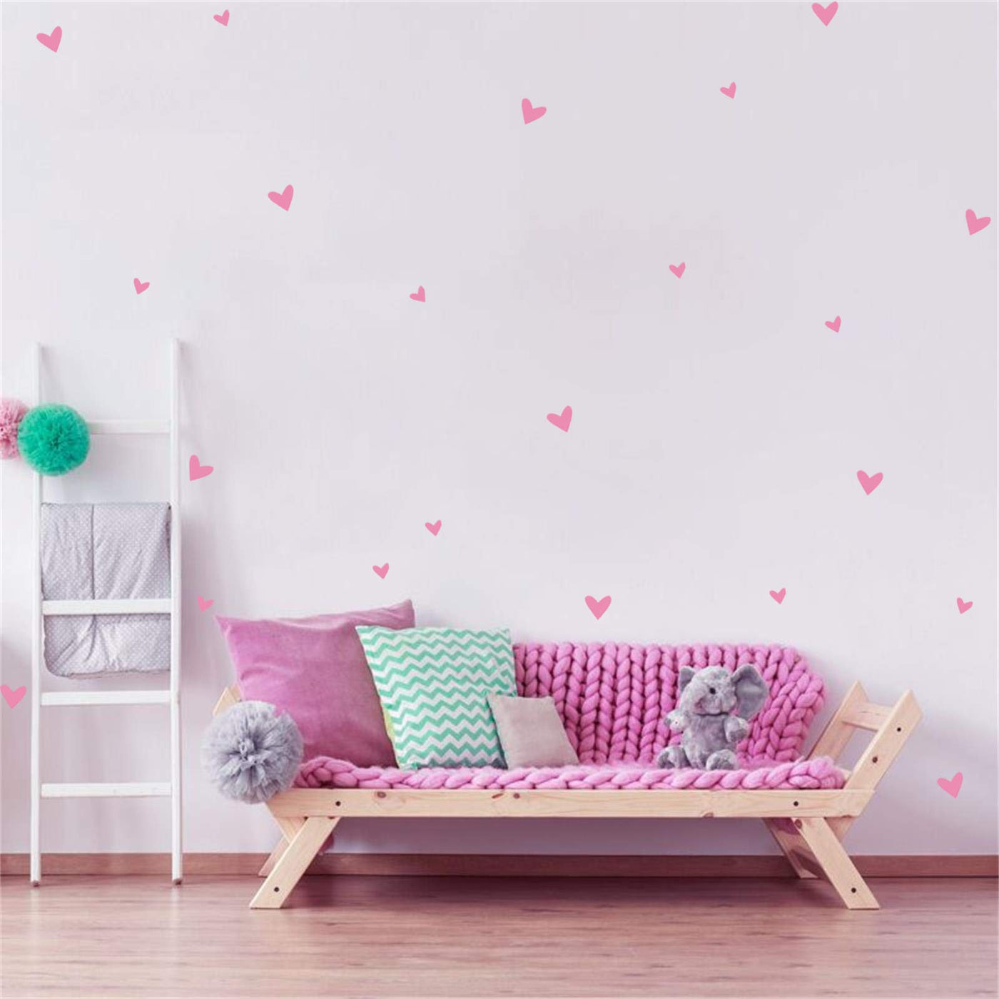 126 pcs Loving Heart Wall Decals for Girls Bedroom Kids Room Decor Toddler Girls Room Wall Decor Boho Pink Heart Wall Stickers Nursery Decor for Girls Kids Wall Decals